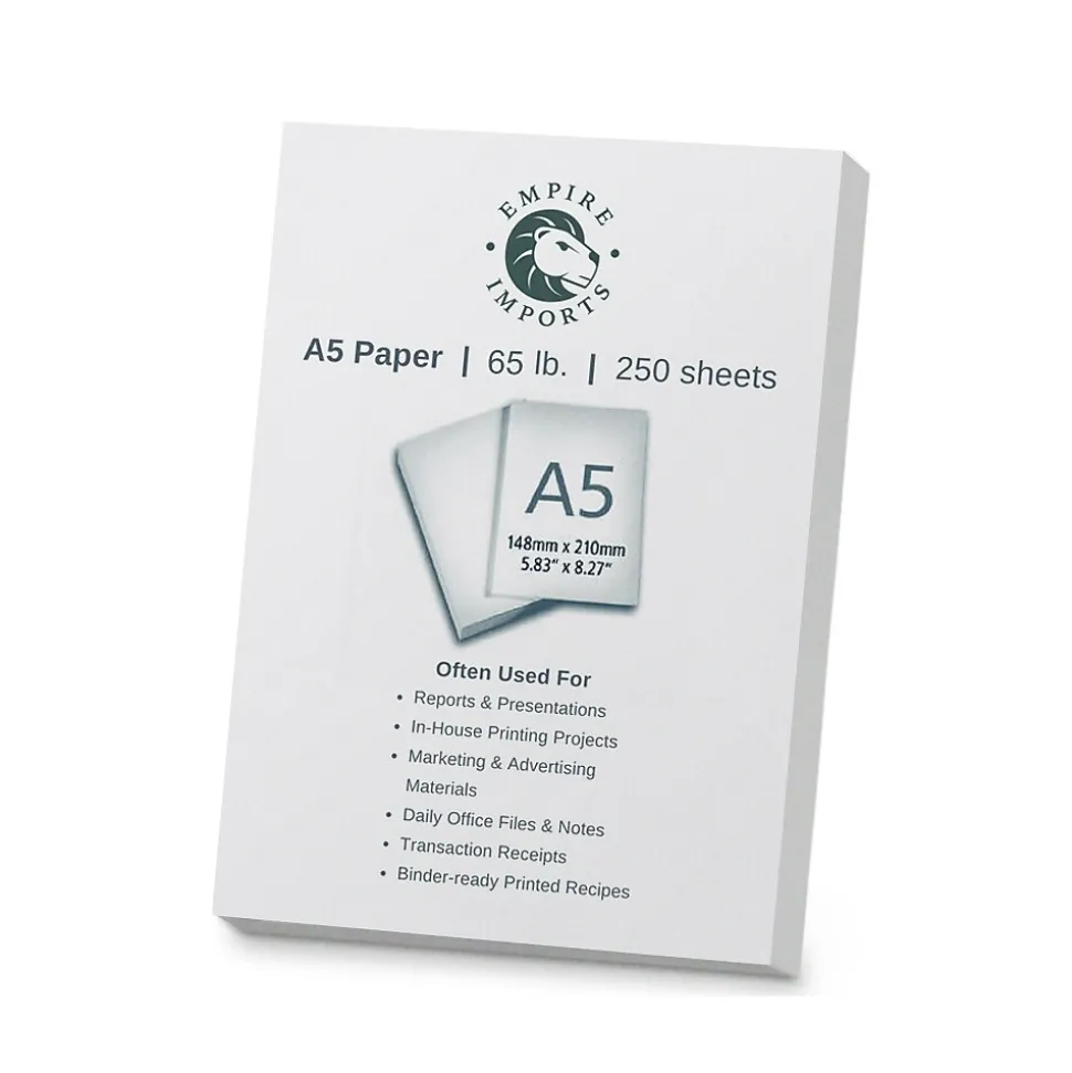 Empire Imports 65 lb. Cardstock Paper, 5.8″ x 8.3″, White, 250 Sheets/Ream (A5CARD)