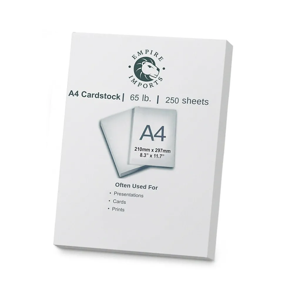 Empire Imports 65 lb. Cardstock Paper, 8.27" x 11.69", White, 250 Sheets/Ream (A4CARD)