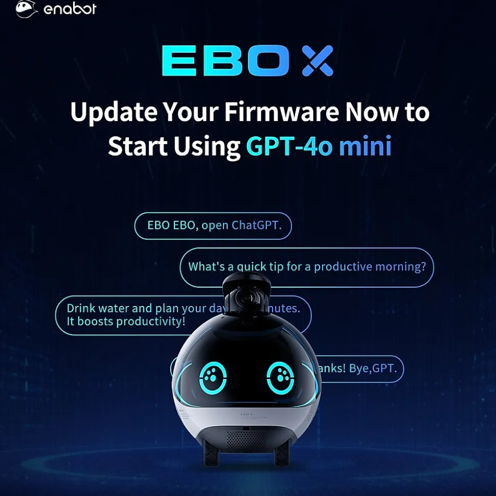 - EBO X is Your Smart Guardian at home, which can provide Elderly Fall Alert, Crying & Call-for-Help Alert, Climbing Alert, Facial Recognition & Medication Reminder, Stranger Alert and Fixed-location & Auto Cruising Security.