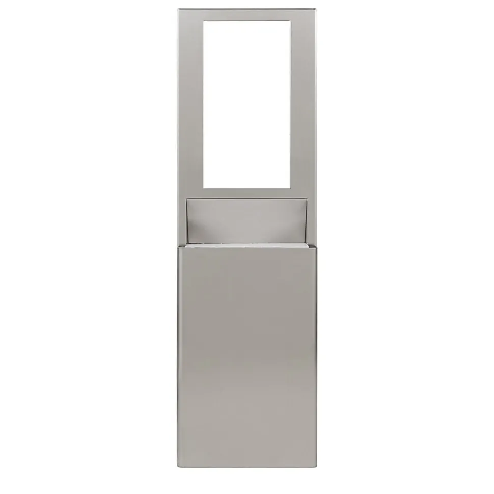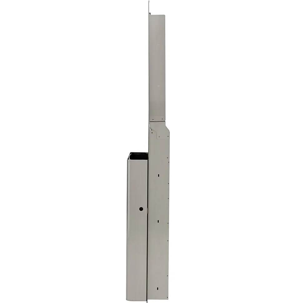 Higher capacity (10.12 Gallon vs. 6.93) trash receptacle for the Georgia-Pacific enMotion® Flex Recessed Paper Towel Dispensers is specifically engineered for facilities with a 15″ cavity. This trash receptacle is ideal for new facilities or renovations. Stainless steel design complements any decor to enhance the image of any facility and is ADA compliant helping provide a total solution. *Due to space limitations when stud cavities are less than 15”, the high capacity trash receptacle cannot be used – see 59751.