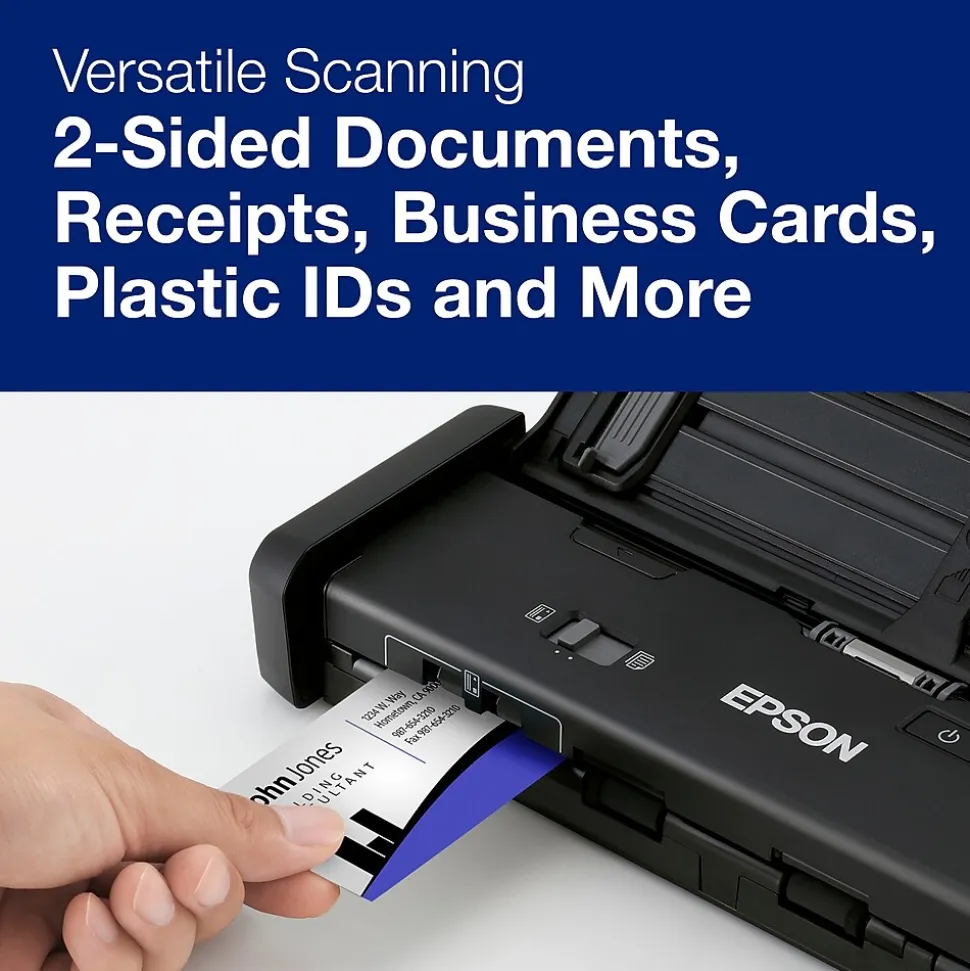 Capture both sides of documents at once with the convenient automatic feeder on this scanner, which also lets you scan and store documents to the cloud for quick collaboration and sharing. This Epson WorkForce portable scanner comes with a TWAIN driver to ensure ease of connection to any document management software.