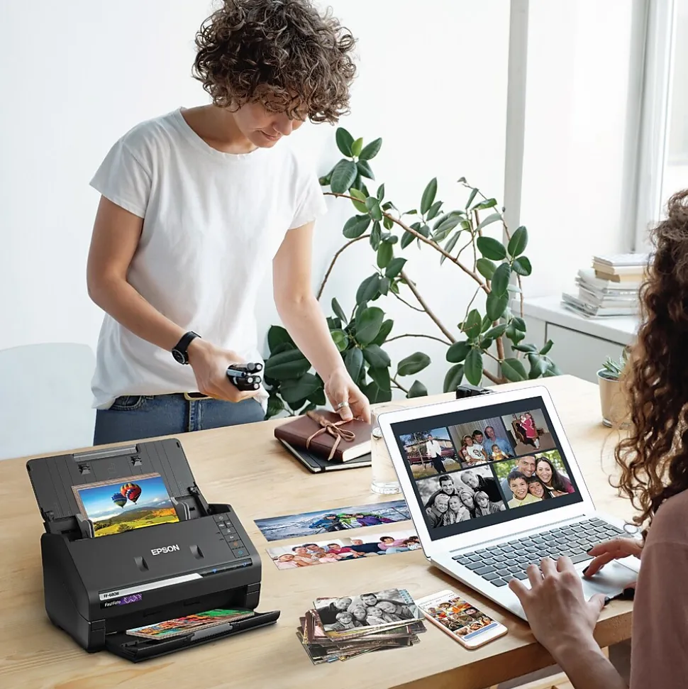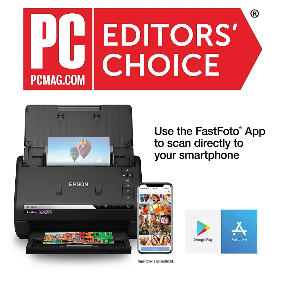 Preserve what’s priceless with the Epson FastFoto FF-680W — the World’s Fastest Personal Photo Scanner. Scan thousands of photos — as fast as 1 photo per second. Easily restore, save, organize and share photos, postcards, panoramas, documents and more. The convenient mobile app enables you to capture the voice of loved ones and create slideshows, so you can easily share stories about your photos right from your smartphone, from a firsthand perspective, for generations to come. Plus, FastFoto brings old photos to life with auto enhancement, color restoration and more. Offering the ultimate in versatility, it includes a variety of format options for quick sharing, archiving and enlargements.