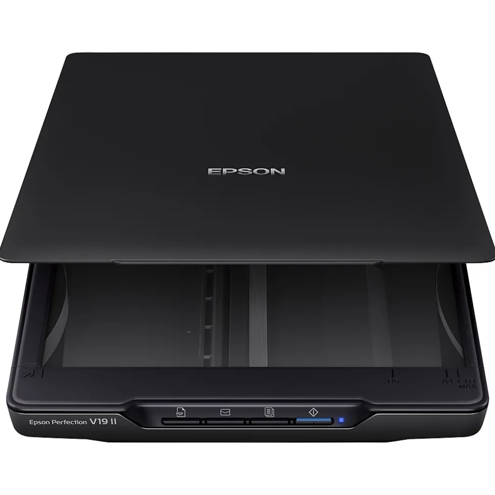 Make scanning simple with the affordable, compact and lightweight Epson Perfection V19 II. With an optical resolution of 4800 dpi, this easy-to-use photo scanner delivers amazing clarity and detail at a great value. The V19 II includes convenient one-touch scanning with easy-to-use buttons, so you can scan directly to PDF or email with just the touch of a button. Get high-quality letter-sized scans in as fast as 10 seconds. Moreover, scan photos, artwork, illustrations, books, documents and more with the included Epson ScanSmart software. If your photos have faded, you can bring back the color in one click with Easy Photo Fix technology. You can also create editable Microsoft Word, Excel and PowerPoint files, or generate searchable PDF files using optical character recognition (OCR) software. The V19 II is USB powered for portability, includes a built-in kickstand for space-saving vertical placement and storage, and features a high-rise, removable lid to accommodate bulky items such as books and photo albums.