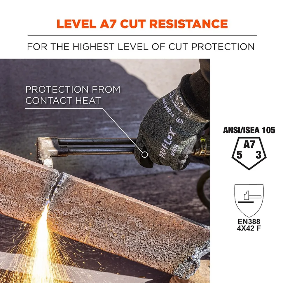 - TESTED & APPROVED – EN407 level 1 contact heat resistant, ANSI A7 cut resistant, EN388: 4X42F, ANSI level 5 abrasion resistant, ANSI level 3 puncture resistant