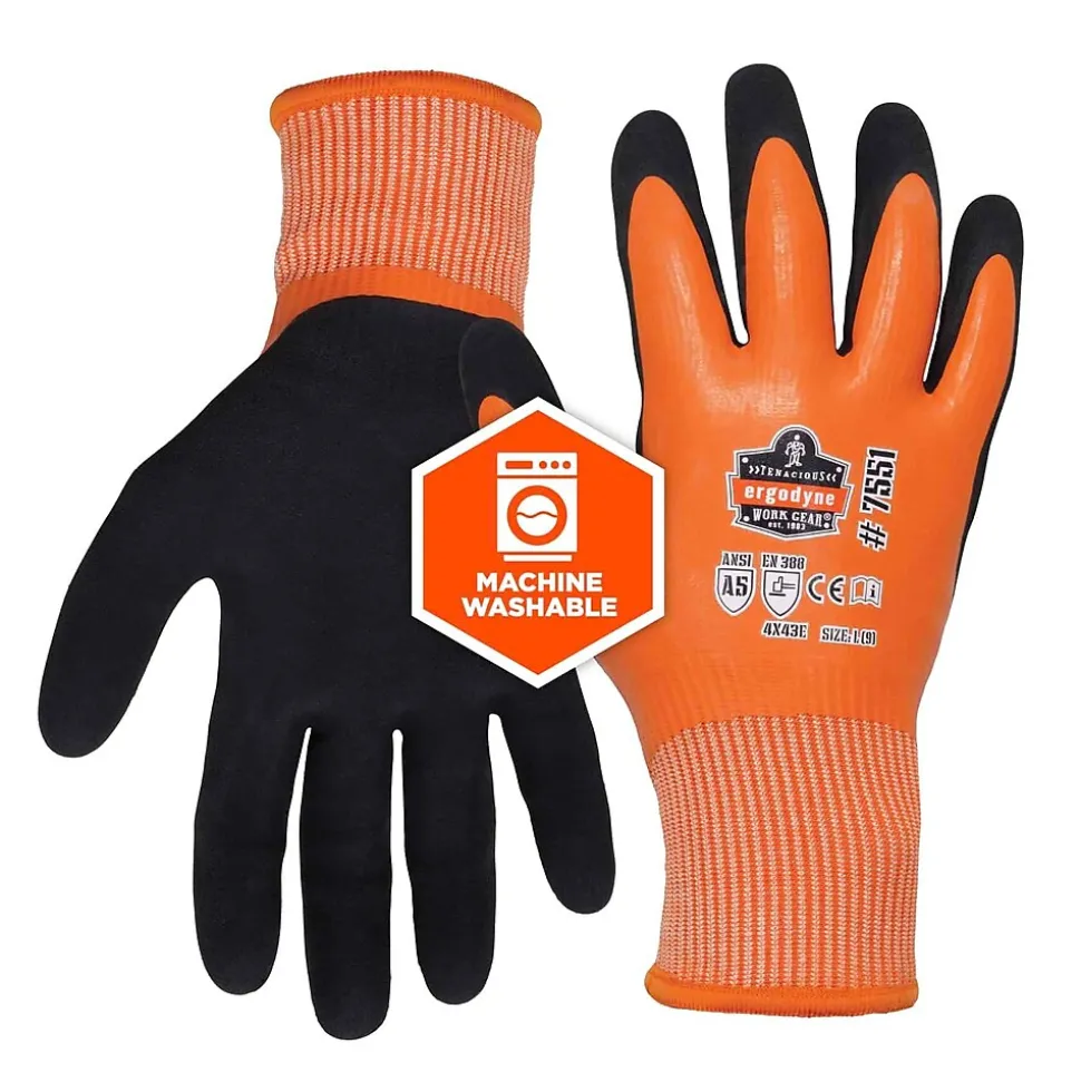 - DEXTERITY – Dual layer of latex and nitrile remains flexible in cold weather for easy handling of equipment and materials