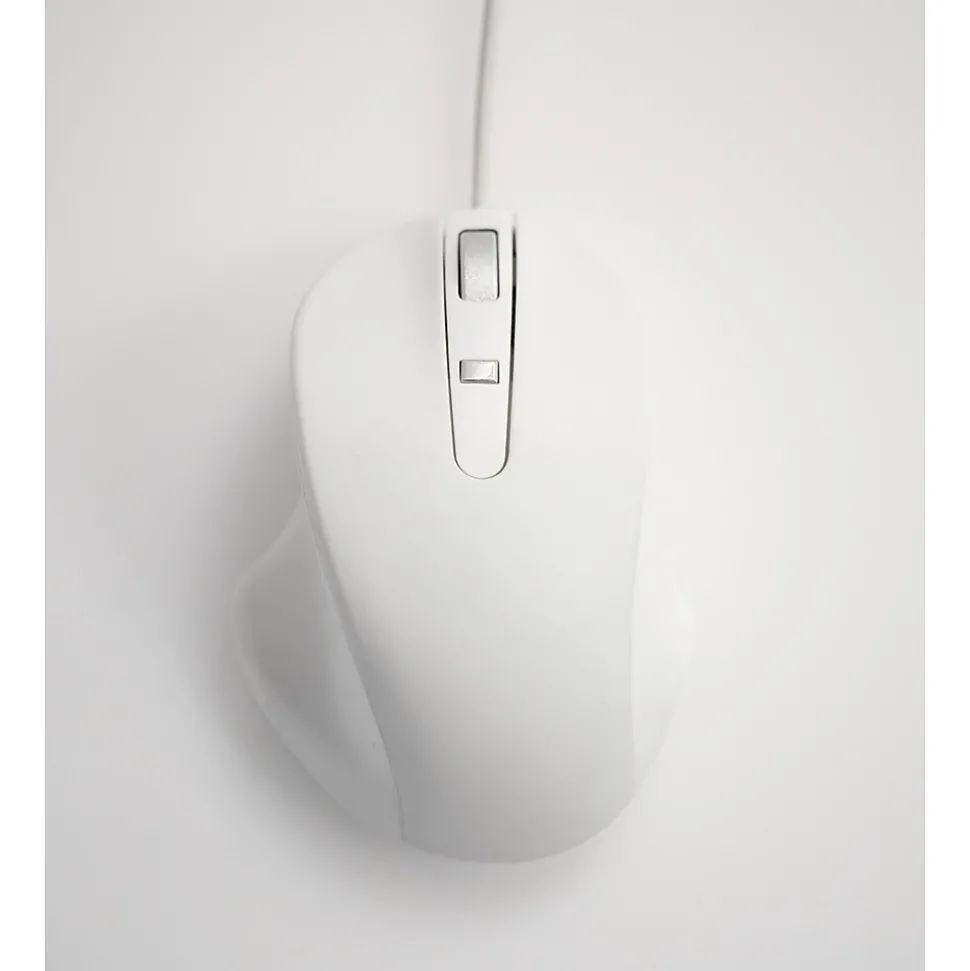 The Matias Wired PBT Mouse features a premium type of plastic called PBT, which feels better to the touch, and doesn’t yellow over time like the cheaper ABS plastic used in most other mice. The higher quality materials extend to the scroll wheel and top button as well, as they are made of aluminum. Inside is premium grade hardware, including OMRON switches and a TTC encoder, for a great mouse experience. There are 4 mouse buttons (left, right, scroll wheel, and top button). The mouse has a fixed, hardwired USB cable with a USB-A connection.
