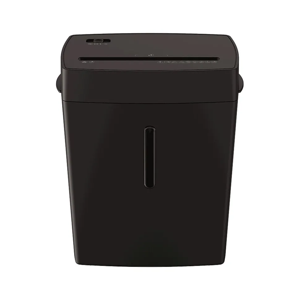 Essentials Powershred HH-8C shreds 8 sheets per pass into 5/32 x 1-3/8″ cross-cut particles (security level P-4). It also safely shreds staples, paper clips and plastic credit cards. Shreds for up to 3 minutes before a 30-minute cool down period is needed. Powershred HH-8C features 4.0-gallon bin with easy lift-off head.