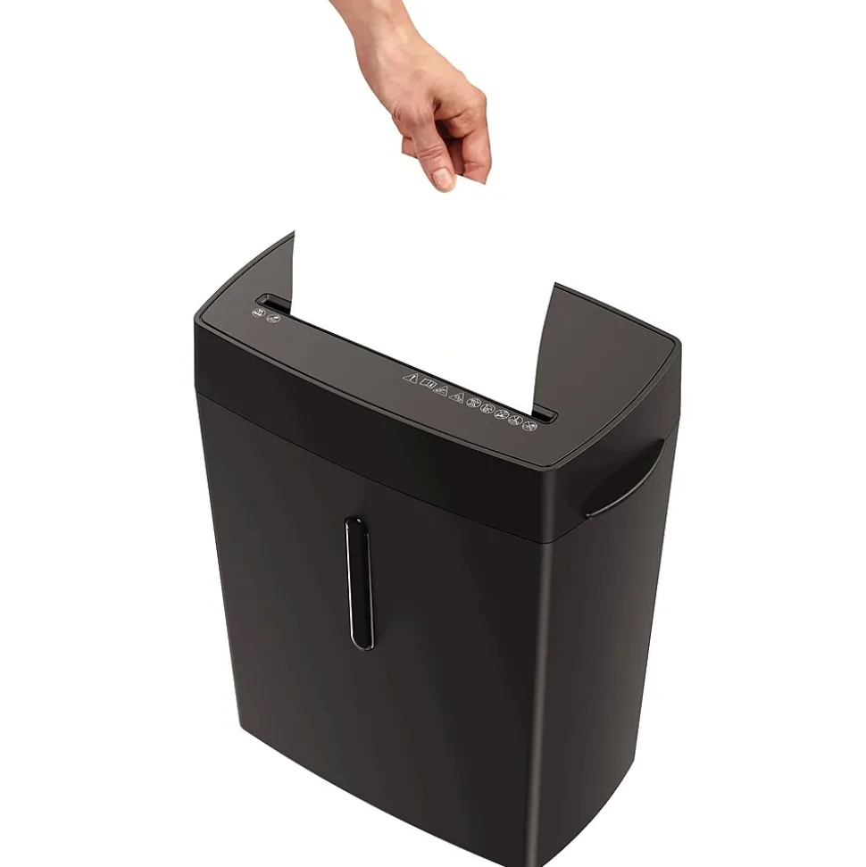 - Shreds credit cards, staples, and paper up to 8 sheets at 10′ per minute