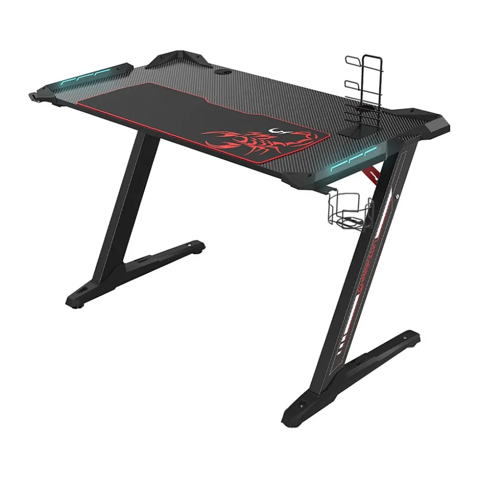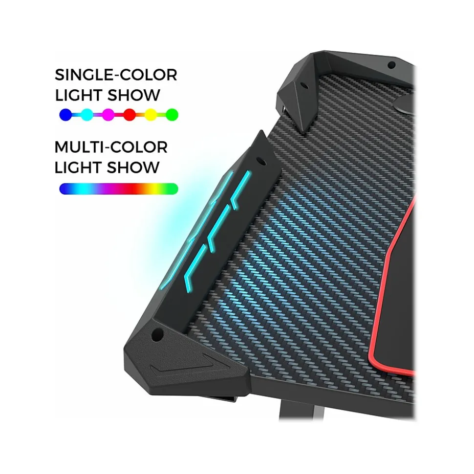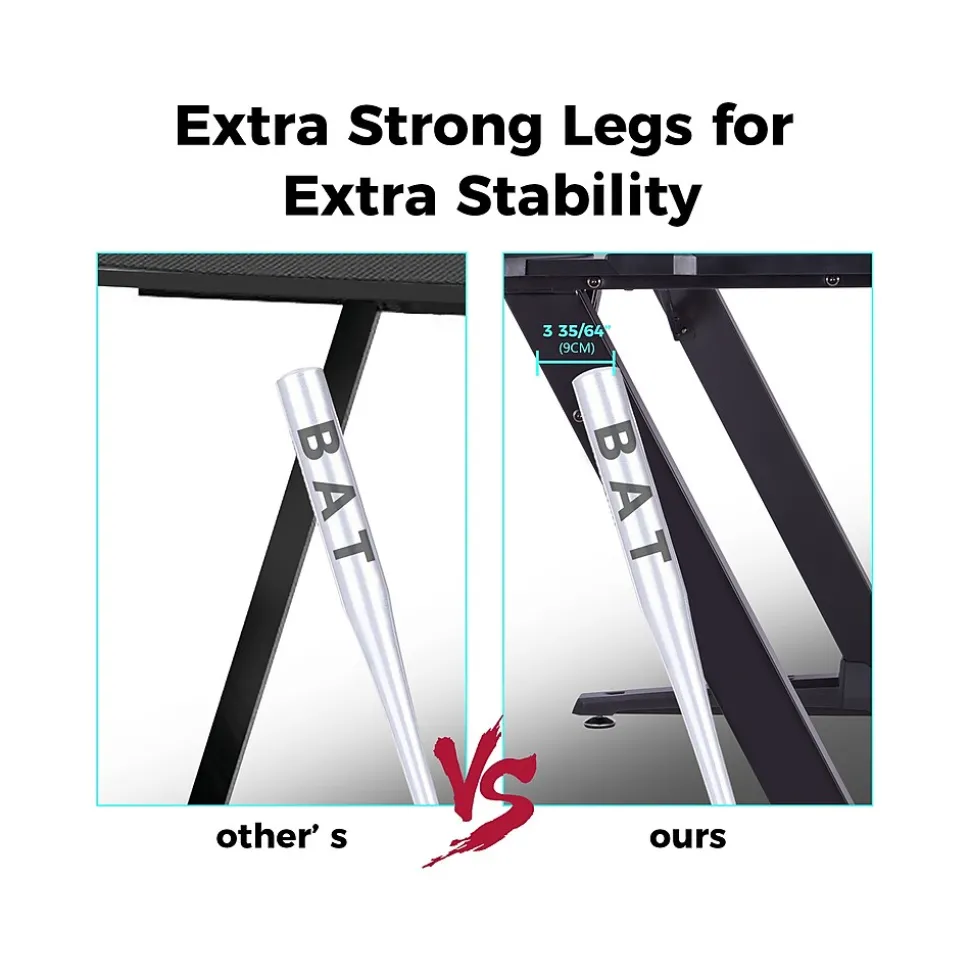- Gaming desk boasts a super strong metal support frame with F1 designed balancing levers that stabilize your battle station from wobbling under extreme gaming conditions