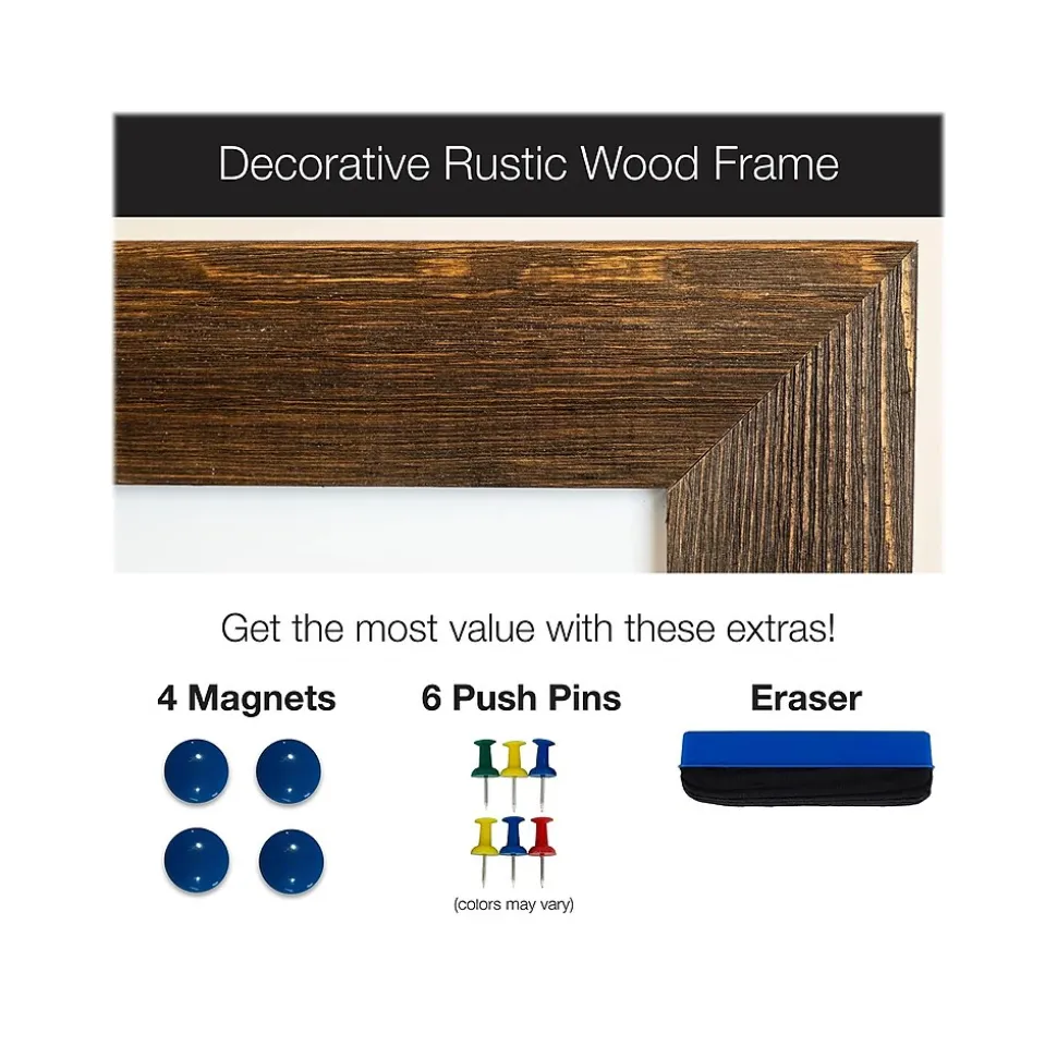 The Excello Global Products 24″ x 36″ dry-erase and cork board offers a high-quality wooden frame, four magnets, pushpins, and one eraser. The board comes with preinstalled brackets at the back and can be mounted horizontally or vertically. With its rustic wooden frame, it will surely add some flair to your room. Offers an elegant and professional look and feel and is made of durable materials that are sturdy enough for long-term use. Excello Global Products is a family-owned USA company and has have been making quality products for over 50 years.