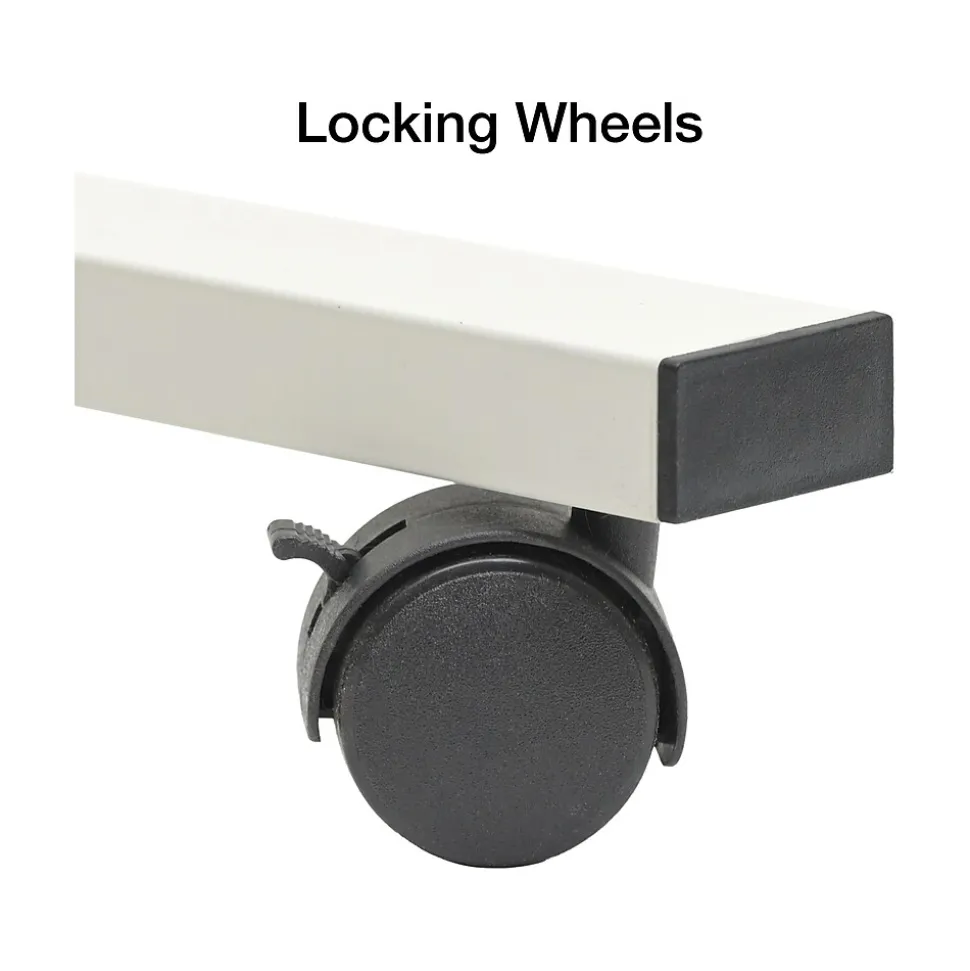 - Four wheels allow the whiteboard to move easily, or they can be locked to prevent movement