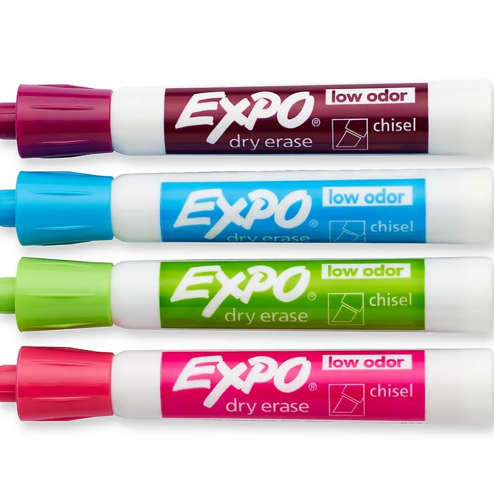 EXPO Low Odor Dry Erase Marker has a quick-drying ink that minimizes the potential for smearing and uses a special low-odor ink formula, which makes it ideal for classrooms, offices, and homes.