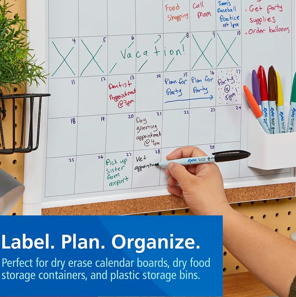 Update your office supplies with these wet-erase markers that each feature a fine point for enhanced precision and accuracy. Because these markers are non-toxic, they’re safe for children to use. These Expo Vis-a-Vis overhead markers contain a water-based ink formula that makes for a bright look on white boards or transparencies.