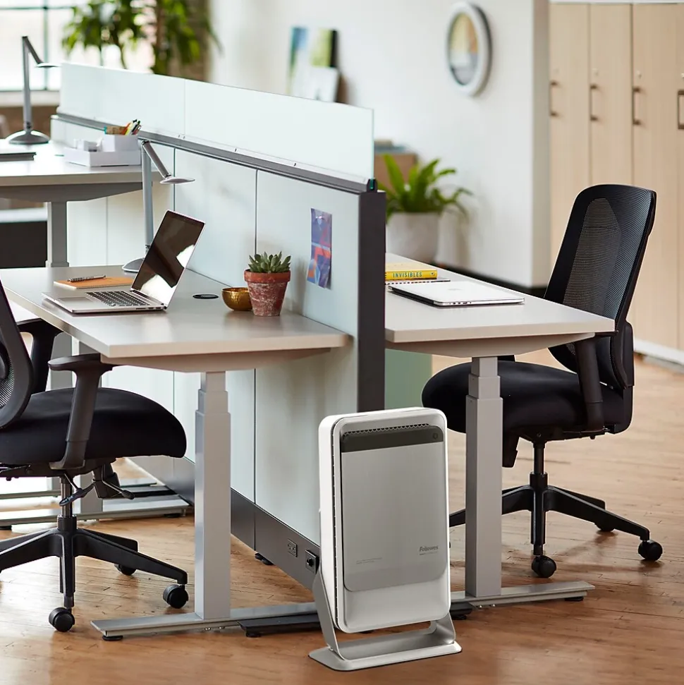 The super slim design of the Fellowes® AeraMax® Pro AM2 is 99.99% effective against coronavirus* and delivers 3-5 air changes per hour (ACH) in 150-250 square feet spaces; it’s ideal for smaller shared spaces. Proprietary and patented EnviroSmart™ technology makes AeraMax Pro the only air purifier to automatically responds to occupancy and air quality levels. The 4-stage True HEPA filtration system removes over 99% of all airborne contaminants. Fellowes® AeraMax® Pro air purifiers were demonstrated through independent laboratory testing to be effective in reducing aerosolized airborne concentration of Human Coronavirus 229E in a test chamber, reaching 99.99% airborne reduction within 1 hour of operation.