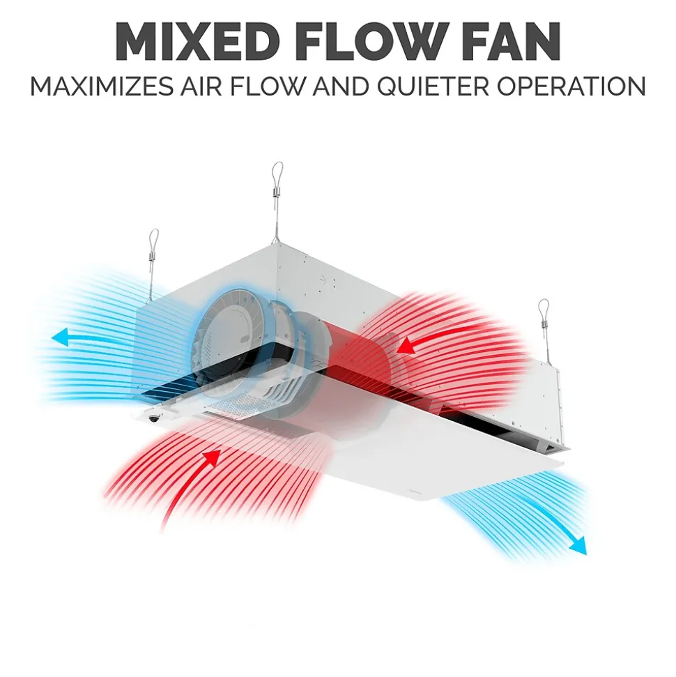 - Ceiling-mounted air purifier designed to clean the air in your home or office