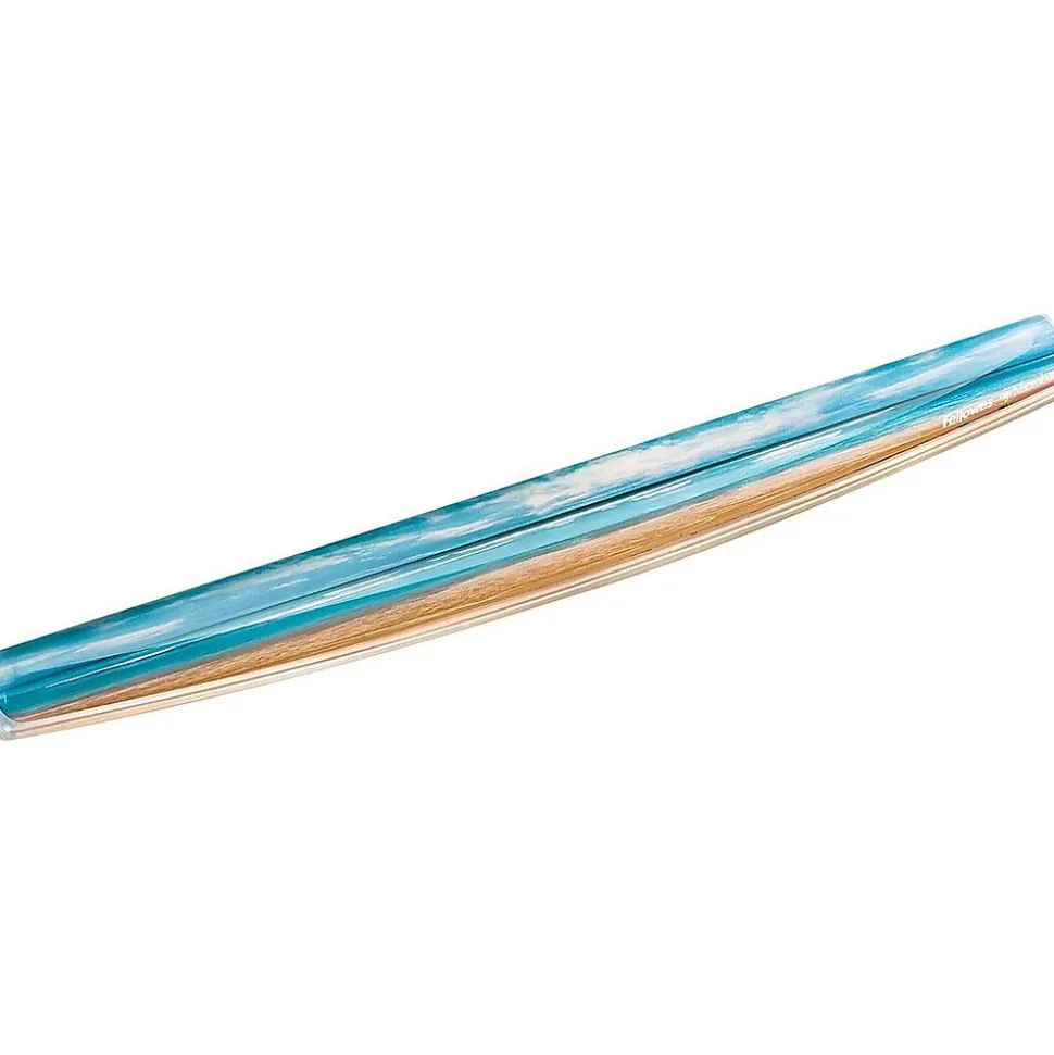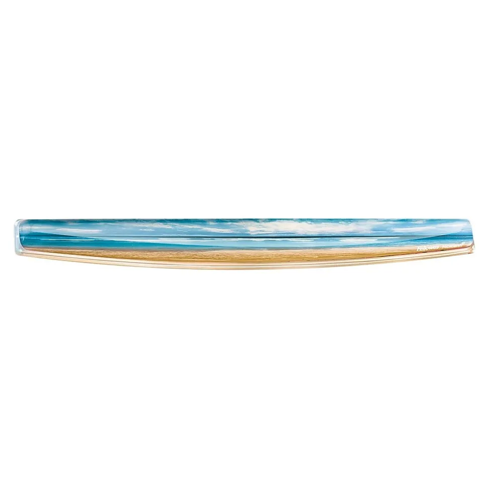 Keep your wrist aligned and express your style with this sandy beach photo gel keyboard wrist support.The Fellowes Photo Gel ergonomic 9179401 keyboard wrist rest, uses self-adjusting gel to provide superior comfort and softness to help in relieving wrist pressure. The MICROBAN antimicrobial product protection ensures cleanliness and safety. The stain-resistant polyurethane covering is easy to clean. The non-skid rubber backing keeps the pad in place.