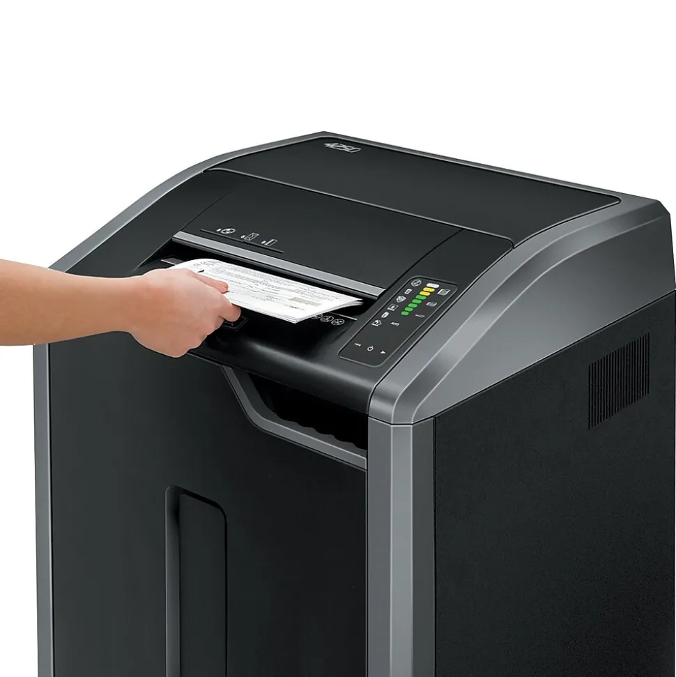- Commercial cross-cut shredder is designed for busy professionals