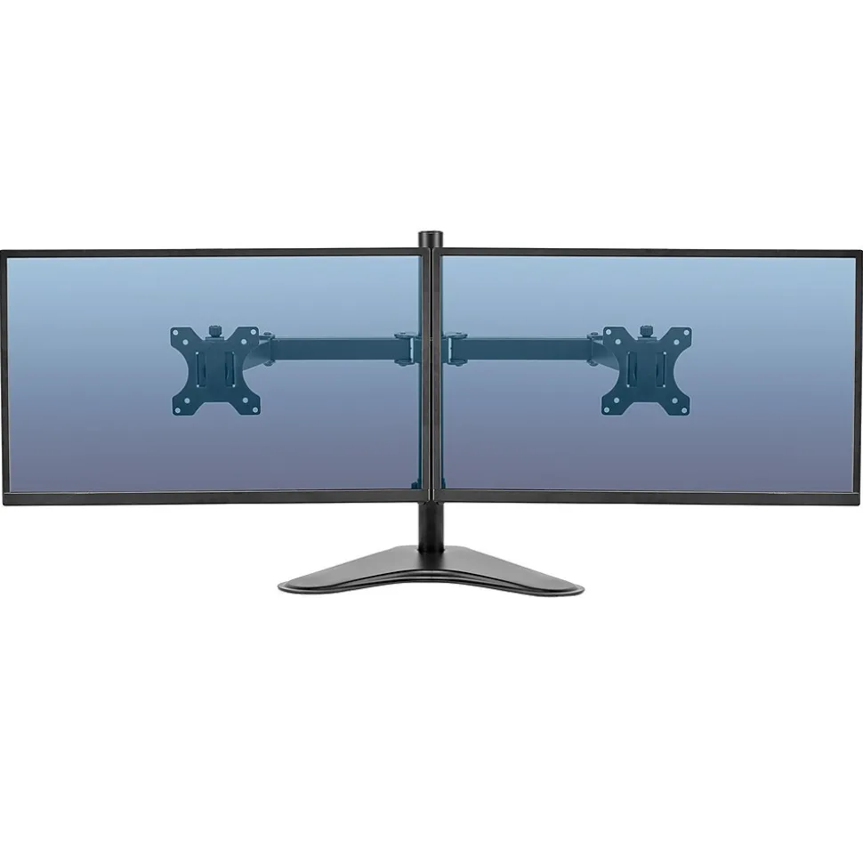 - Free-standing design allows dual monitors to be used in spaces that do not allow a clamp or grommet mount