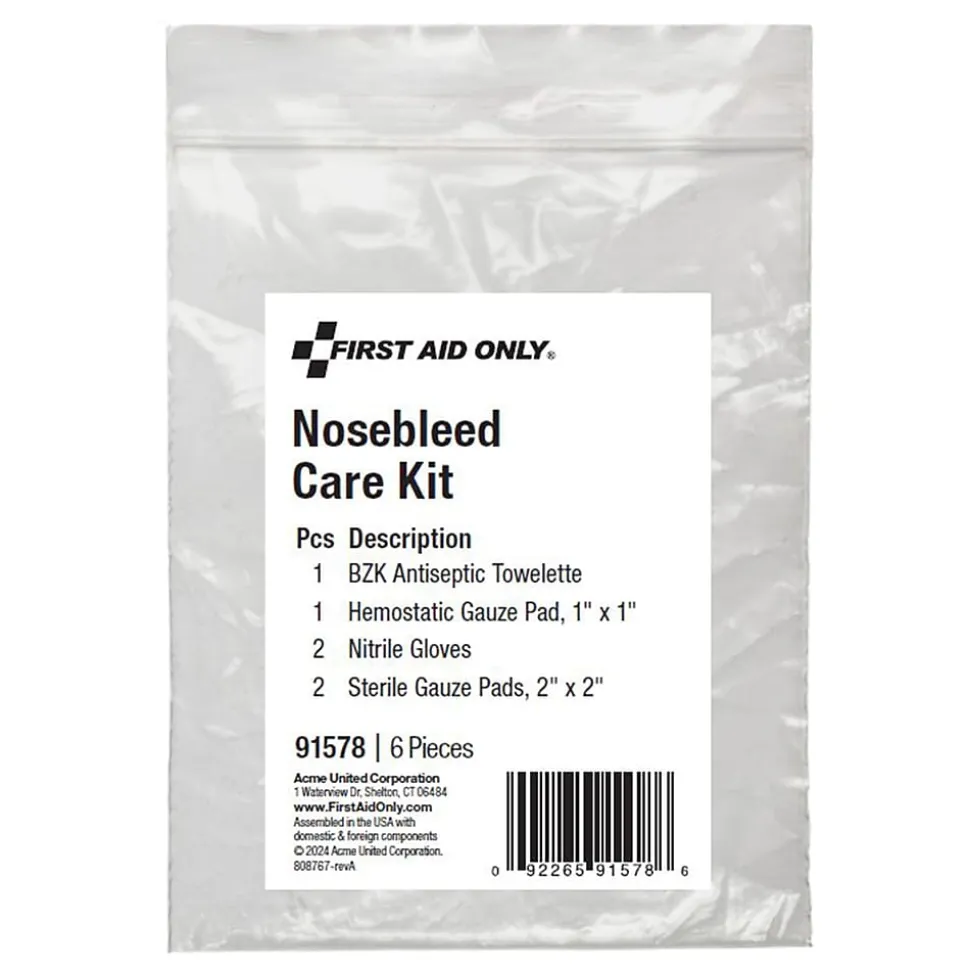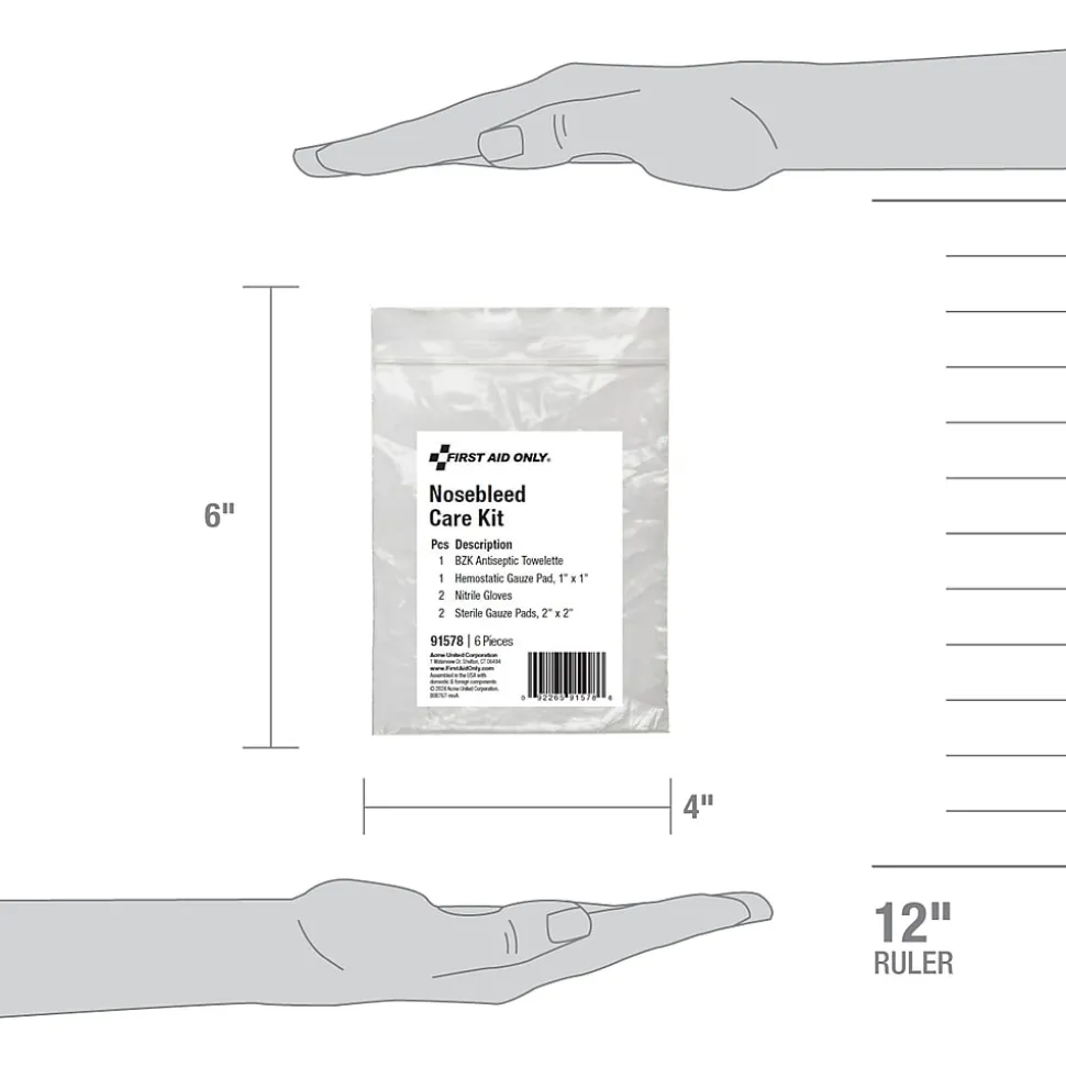 Handle nosebleed injuries with ease with this Nosebleed Care Kit. Perfectly portioned to contain just what you need to treat minor nosebleeds, the single use pack may be discarded after use. Refills the 91575 Care Kit or supplements existing first aid kits.