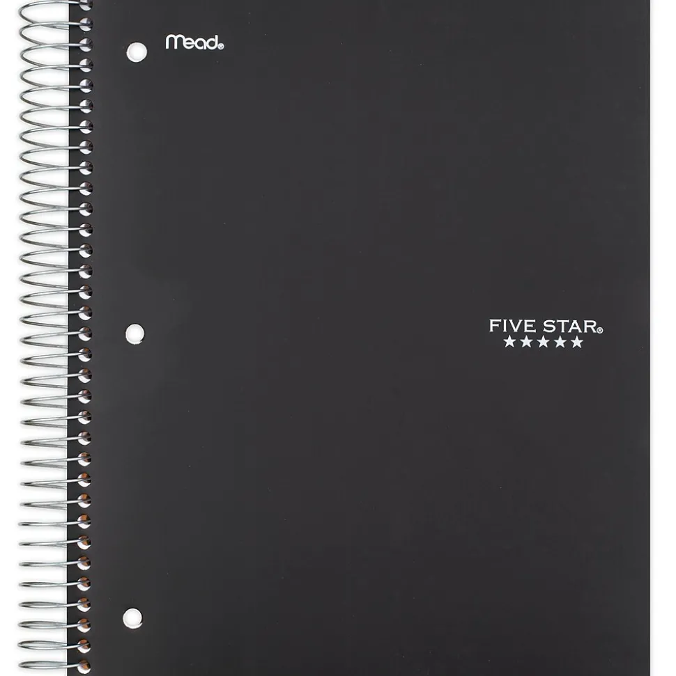 LASTS ALL YEAR. GUARANTEED!* Five Star 3 subject notebook has 150 double-sided, wide ruled sheets that fight ink bleed and are perforated for easy tear out. Sheets measure 8″ x 10 1/2″ when torn out. Tough pockets help prevent tears and hold 8″ x 10 1/2″ loose sheets. Covers are water resistant to protect your notes all year. Spiral Lock wire helps prevent snags on clothes and backpacks. Made with SFI certified paper. Notebook is recyclable – just remove the reinforcement tape on the pocket and recycle the rest! Available in Fire Red, Harvest Yellow, Forest Green, Tidewater Blue, Amethyst Purple, and Black. Color chosen for you.