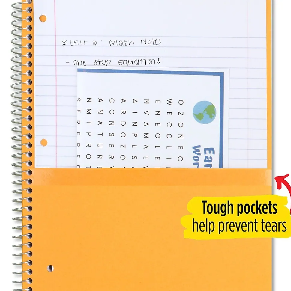 - Tough pockets help prevent tears and hold 8″ x 10 1/2″ loose sheets. Two 2-pocket dividers keep subjects organized. Covers are water resistant to protect your notes all year.