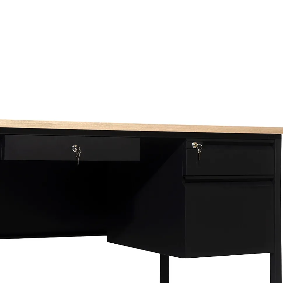 Flash Furniture Cambridge 70″W Double Pedestal Desk, White Oak/Black (GCMBLK180WOK)