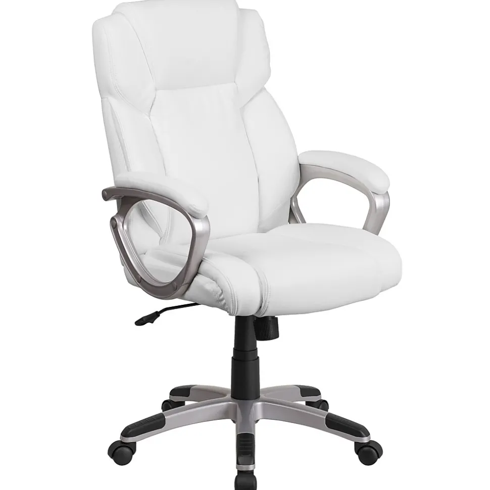 - Color: White; Material: Foam, Leather/Faux Leather, Metal, Plastic