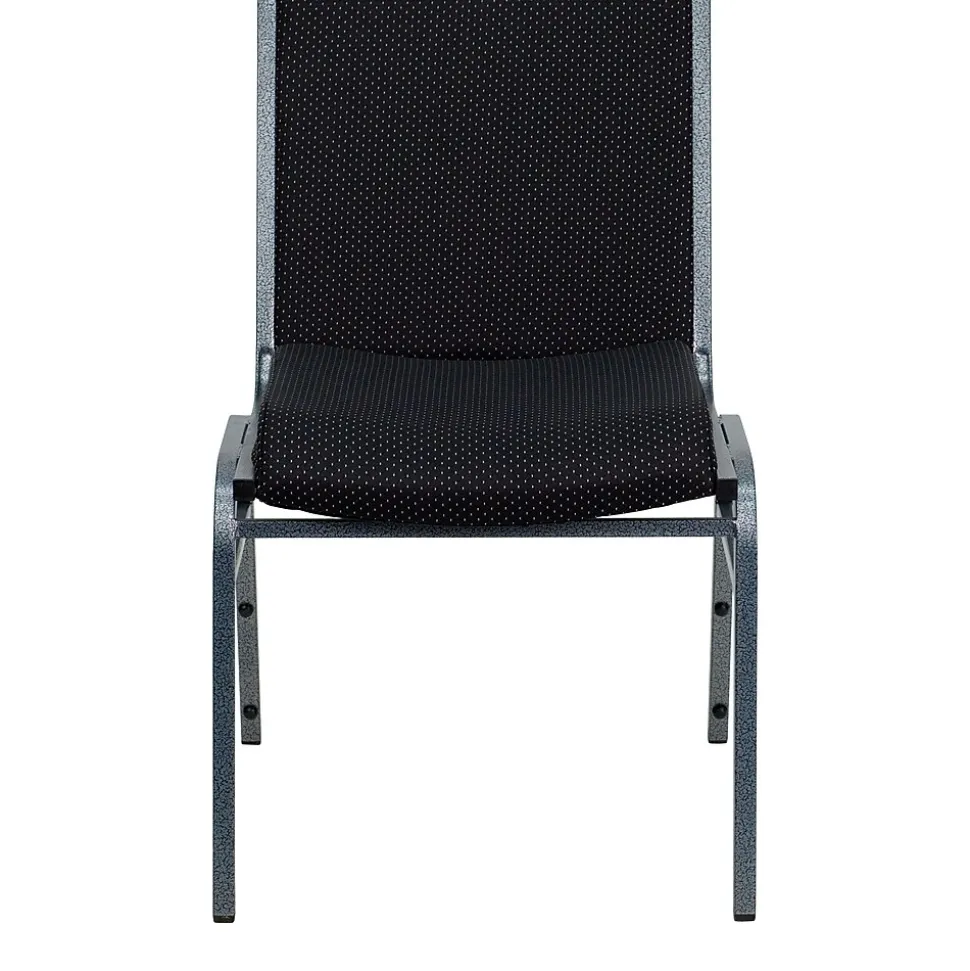Flash Furniture HERCULES™ Heavy duty multi purpose stack chair has 18 gauge high carbon steel for optimal stability. Chair is made of black patterned fabric upholstery with 3” thickly padded seat offering comfort, sold as 20 per pack.