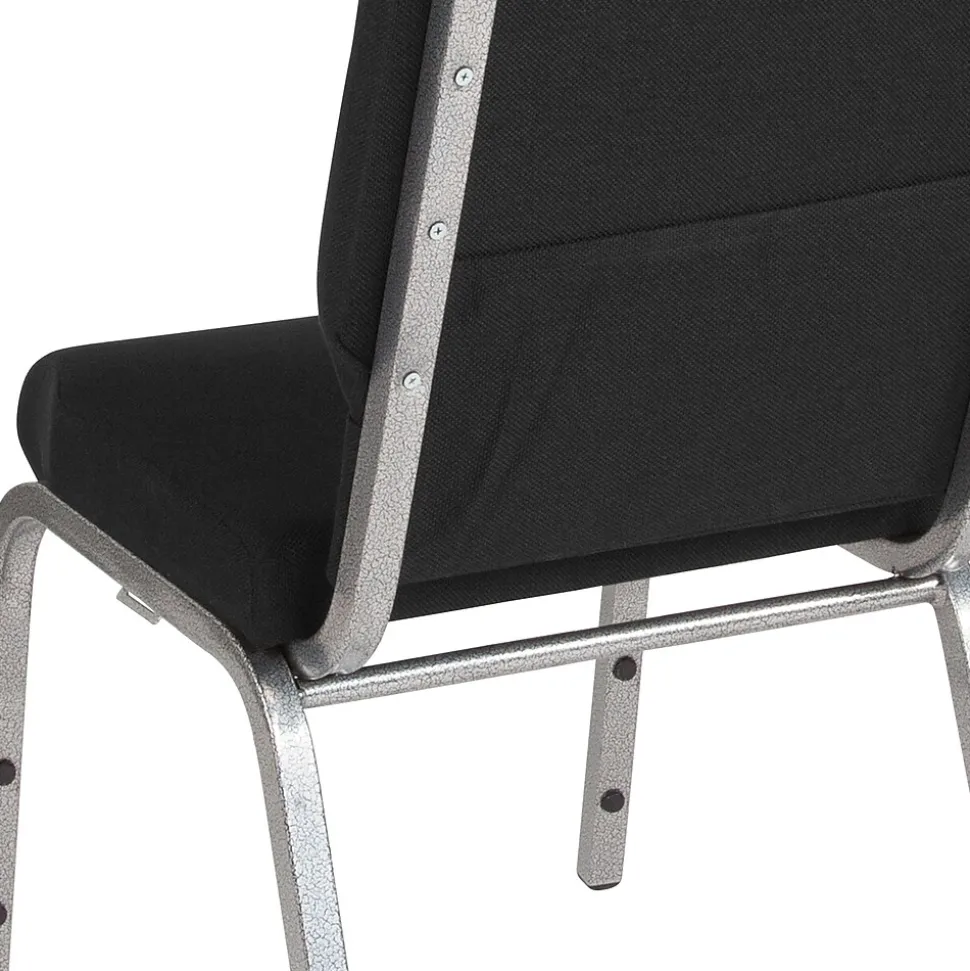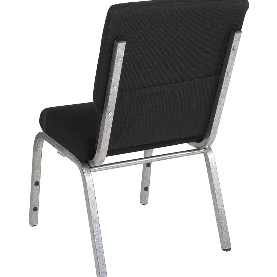 This beautiful church chair will keep your guests supremely comfortable whether you’re hosting an all-day seminar, serving a 10 course meal or delivering your most inspirational sermon. This chair offers an advantage over pew seating with the flexibility of creating different seating configurations. The chair’s cushioned back and 4″ thick seat are generously padded and covered in durable fabric upholstery. The seat has a waterfall edge that reduces pressure on the legs. A convenient book pouch on the back of the chair keeps seminar materials, bibles or hymn books readily available. Built-in ganging brackets connect your chairs and maintain nice, straight rows. Its sturdy 16 gauge steel, gold vein frame, with gracefully angled legs, has been tested to hold up to 800 pounds and plastic rocker glides protect your floor by sliding smoothly. This Church Chair is an excellent option for hotel lobbies, banquet halls, conference facilities and worship centers.