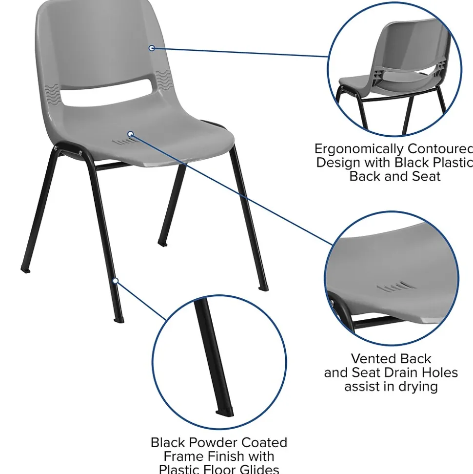 - Ergonomically Contoured Design with Gray Plastic Back and Seat