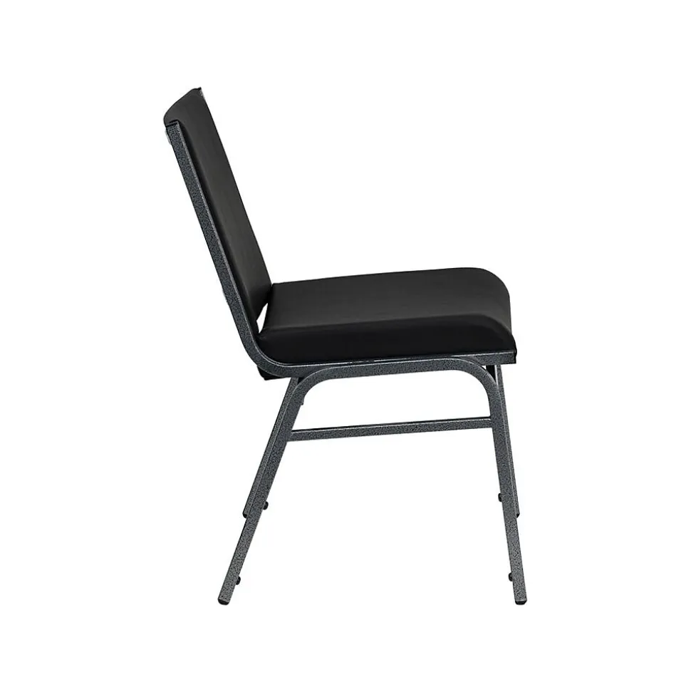 Flash Furniture HERCULES™ Series stack chair features high density black vinyl foam over thick plywood seat. Steel frame with silver vein finish to strengthen seat and comes with plastic glides, sold as 20 per pack.