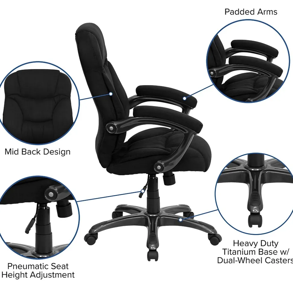 Flash Furniture Jessie Ergonomic Microfiber Swivel High Back Executive Office Chair, Black (GO725BK)