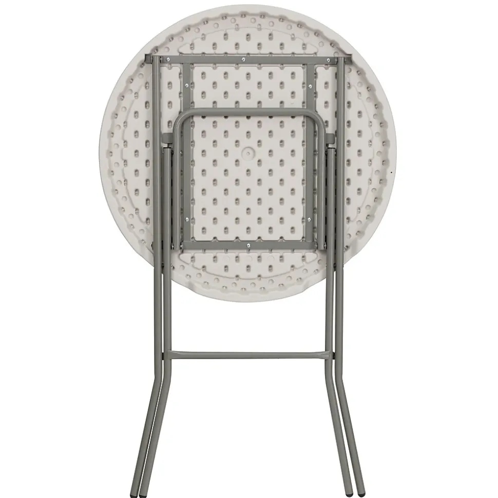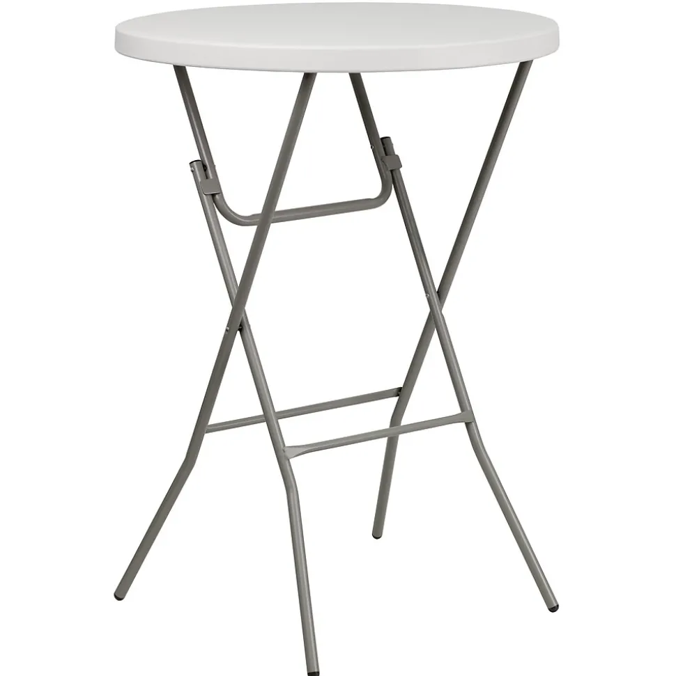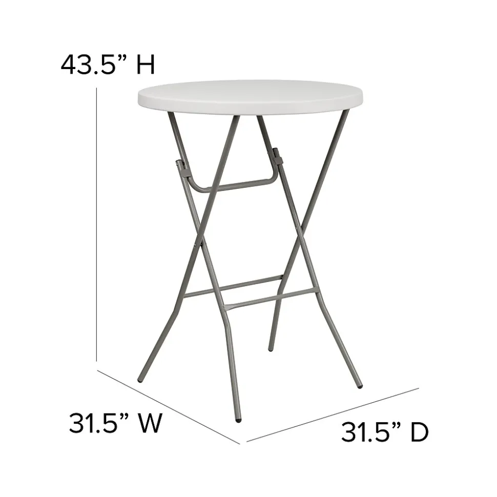 Host mixers at your venue for Wednesday Wind Down, make it a social setting incorporating these bar height cocktail tables. These pub tables encourage everyone to stand around and mingle as your mixologist serves up delicious signature drinks to keep people coming back to your lounge. When you invite friends over to your backyard bash this cocktail table is perfect for socializing or grabbing snacks poolside. This table can comfortably seat up to 3 adults to enjoy friendly conversation. Let the birthday girl shine at her own table while everyone sits at table height tables. The legs fold flat to transport and store away. These event tables are a must have for your event rental business or banquet hall to add variety to your seating. Although designed for indoor events this party table can be used outdoors on the deck or patio during good weather but must be stored indoors.