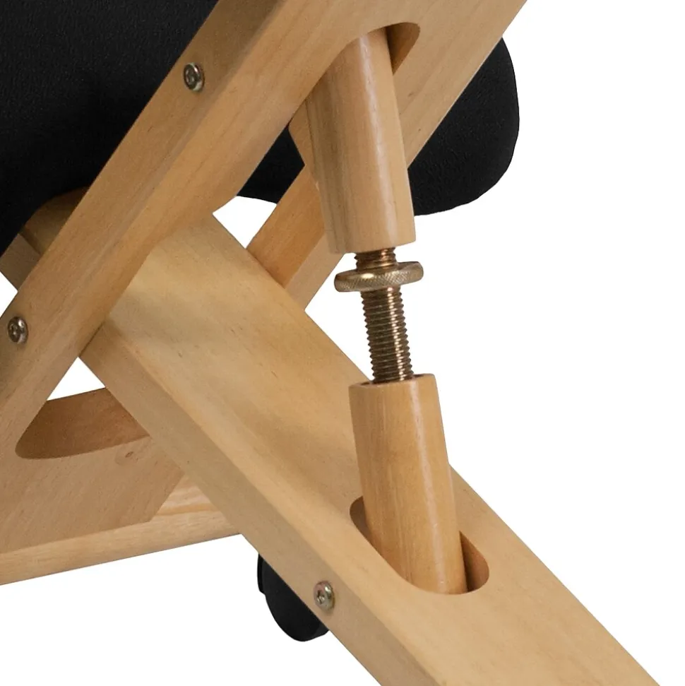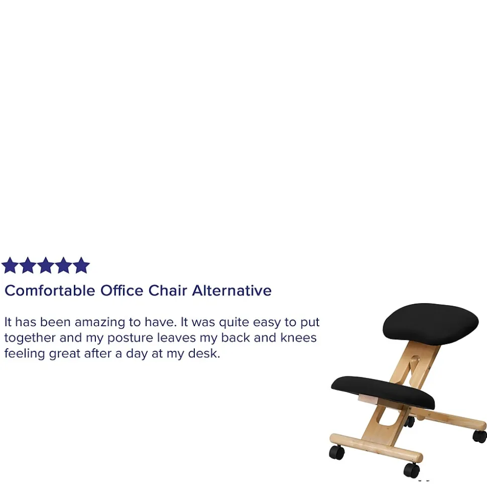 Whether you work from home or go into the office, long workdays can take a toll on your body. This ergonomic kneeling chair is a trend setting option for people who want to support their body’s natural posture. It’s designed to strengthen your lower back muscles and help with spinal alignment. The firm, supportive padded seat and knee rests are filled with 2″ of foam and covered with breathable fabric. The height adjustable frame has a natural wood finish. Dual wheel casters make it easy to roll across the floor. This innovative chair helps to improve your posture, relieve back pain and give you more productive hours in the day.