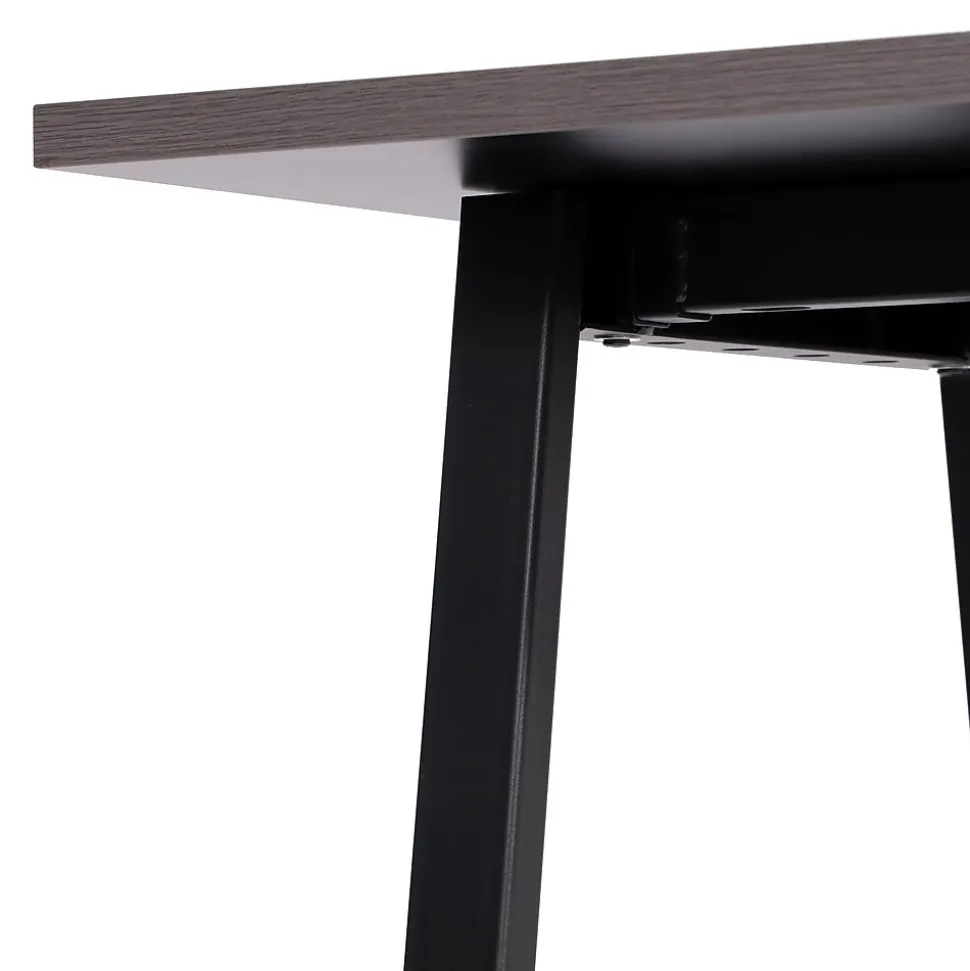 Foster big thinking during brainstorming sessions or encourage open communication and interaction between stakeholders during important meetings with this 48×30 commercial grade conference table. Available in timeless finishes that will blend well in any environment, this boardroom table will make a statement while providing ample space for multiple guests. The liquid and scratch-resistant 1 inch thick table top with a durable laminate finish on both sides and PVC edging increases durability for long-lasting use. The heavy-duty, powder coated, A-frame steel base comes with included hardware and easily attaches to the underside of the table into the predrilled holes. This conference room table holds up to 300 lbs. static weight, and features adjustable floor glides ensuring a level surface. Assembly takes less than 10 minutes and cleanup is easily achieved with a damp cloth.