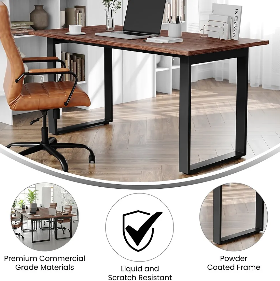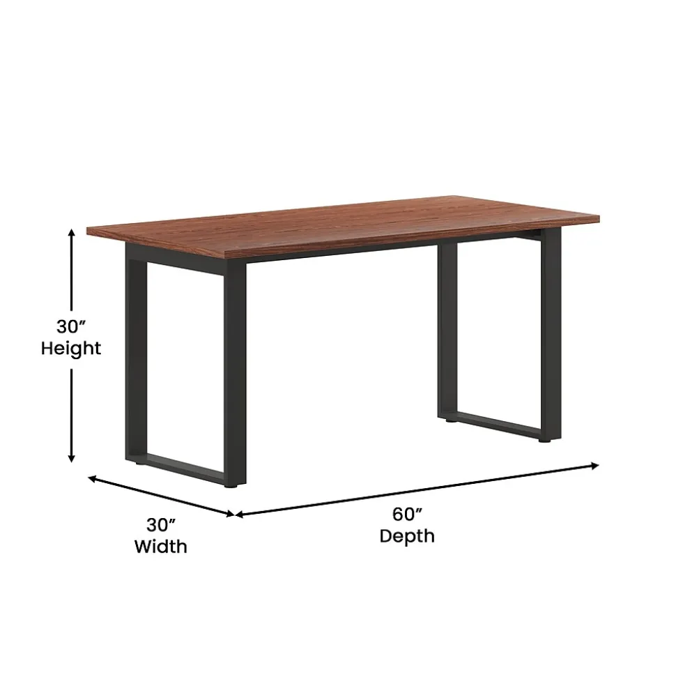 Foster big thinking during brainstorming sessions or encourage open communication and interaction between stakeholders during important meetings with this 60×30 commercial grade conference table. Available in timeless finishes that will blend well in any environment, this boardroom table will make a statement while providing ample space for multiple guests. The liquid and scratch-resistant 1 inch thick table top with a durable laminate finish on both sides and PVC edging increases durability for long-lasting use. The heavy-duty, powder coated, U-frame steel base comes with included hardware and easily attaches to the underside of the table into the predrilled holes. This conference room table holds up to 300 lbs. static weight, and features adjustable floor glides ensuring a level surface. Assembly takes less than 10 minutes and cleanup is easily achieved with a damp cloth.