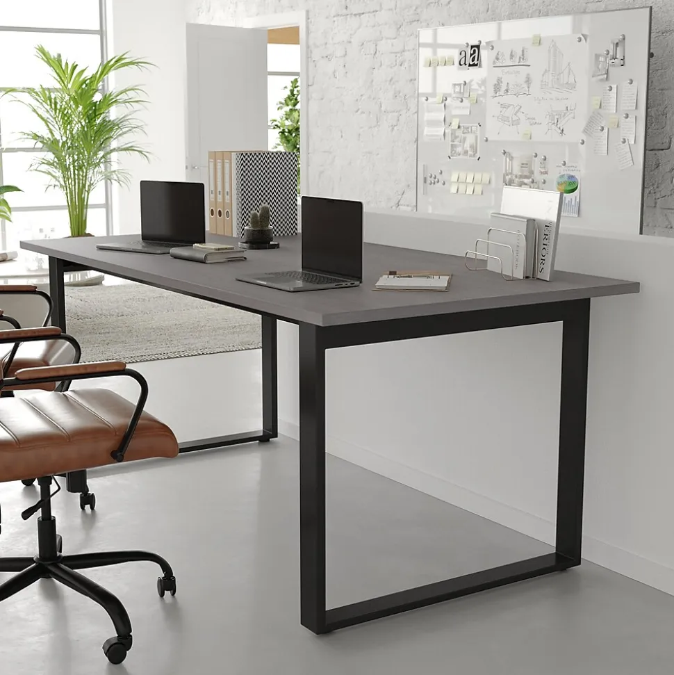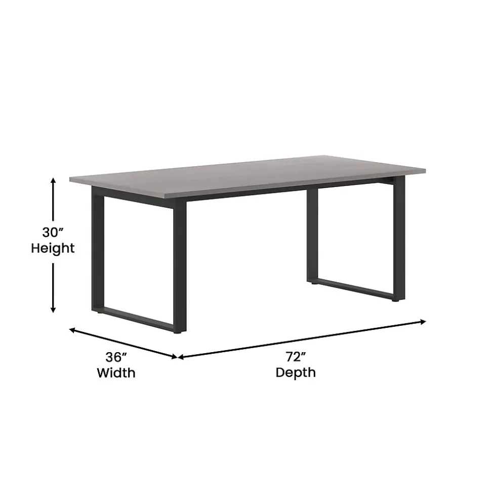 Foster big thinking during brainstorming sessions or encourage open communication and interaction between stakeholders during important meetings with this 72×36 commercial grade conference table. Available in timeless finishes that will blend well in any environment, this boardroom table will make a statement while providing ample space for multiple guests. The liquid and scratch-resistant 1 inch thick table top with a durable laminate finish on both sides and PVC edging increases durability for long-lasting use. The heavy-duty, powder coated, U-frame steel base comes with included hardware and easily attaches to the underside of the table into the predrilled holes. This conference room table holds up to 300 lbs. static weight, and features adjustable floor glides ensuring a level surface. Assembly takes less than 10 minutes and cleanup is easily achieved with a damp cloth.