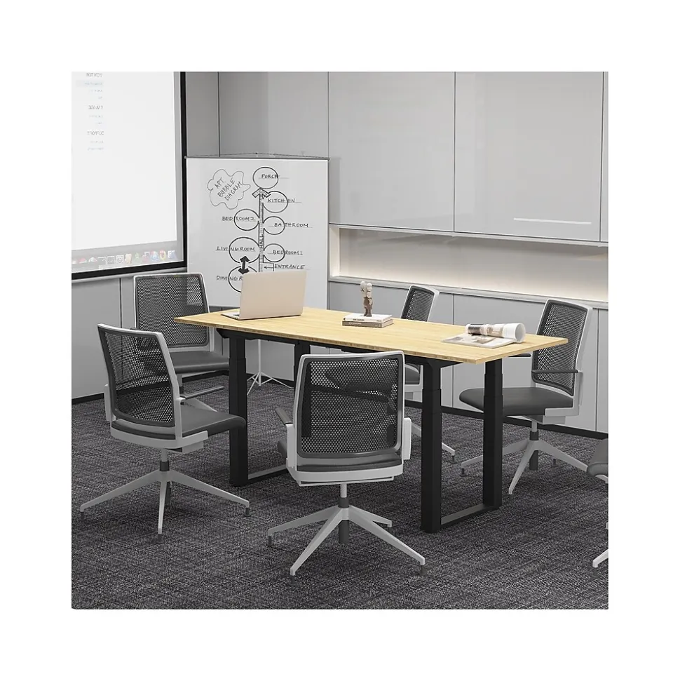 - Desk with adjustable height designed to let you choose between sitting and standing in seconds