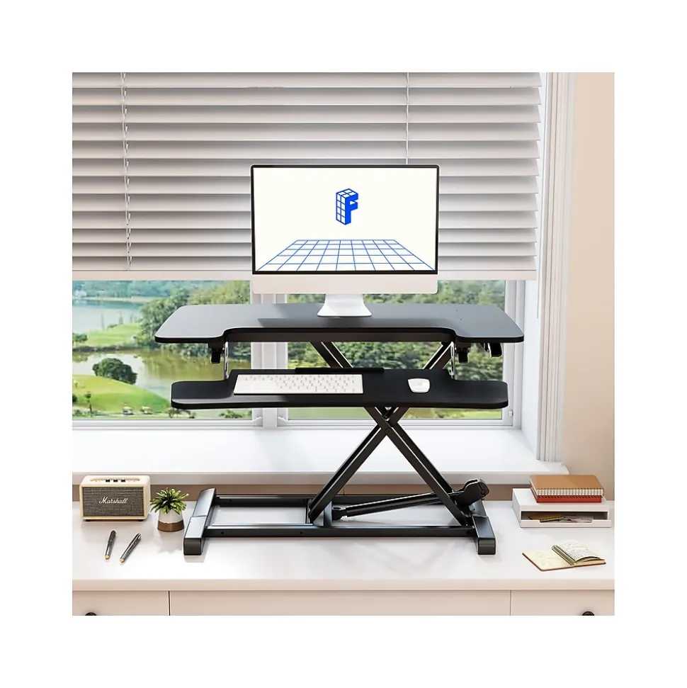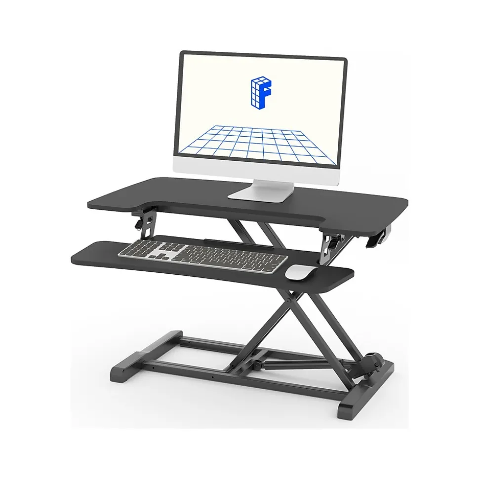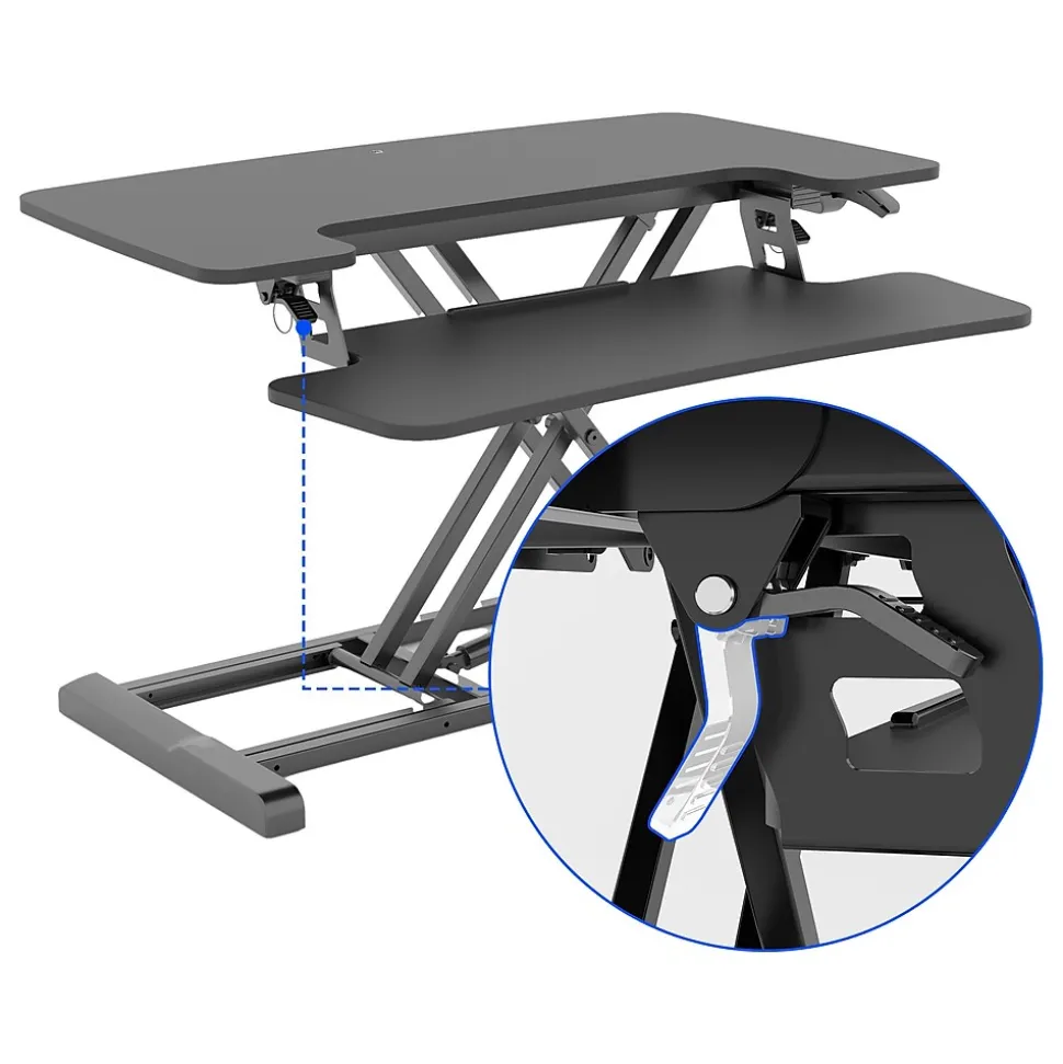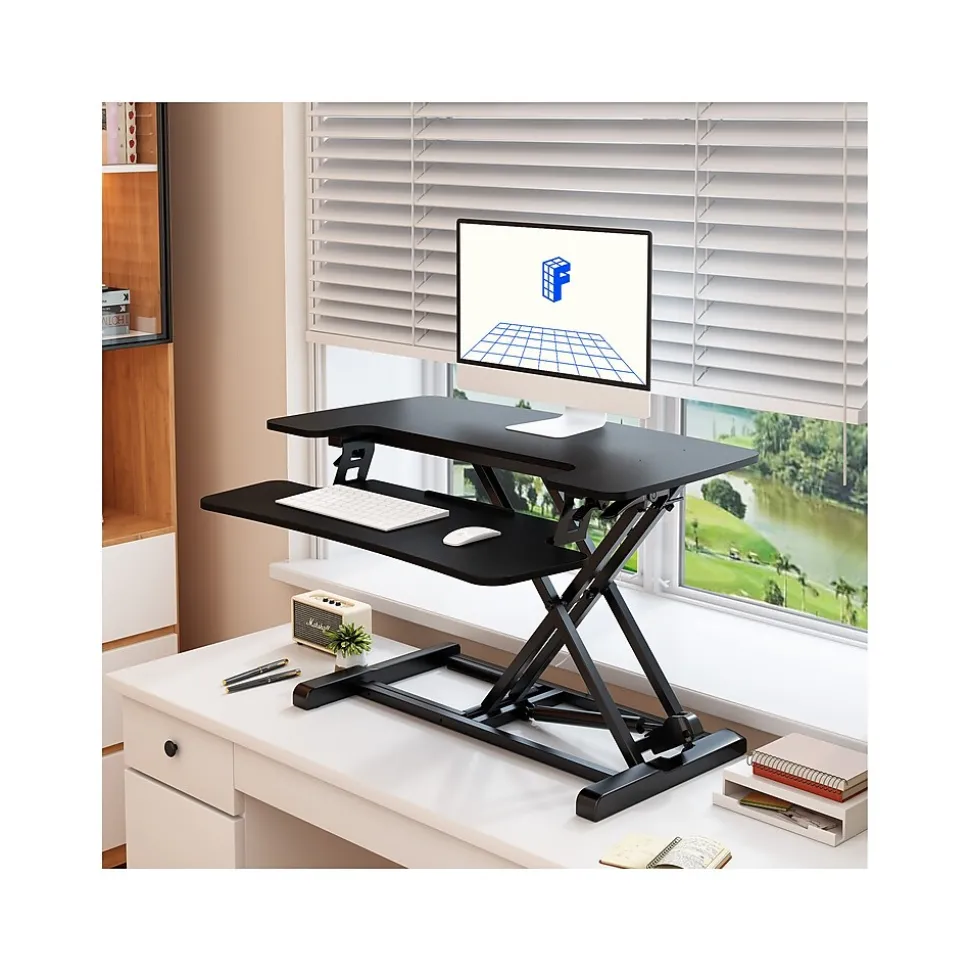 - Standing desk converter provides an easy way to transition between sitting and standing throughout the workday