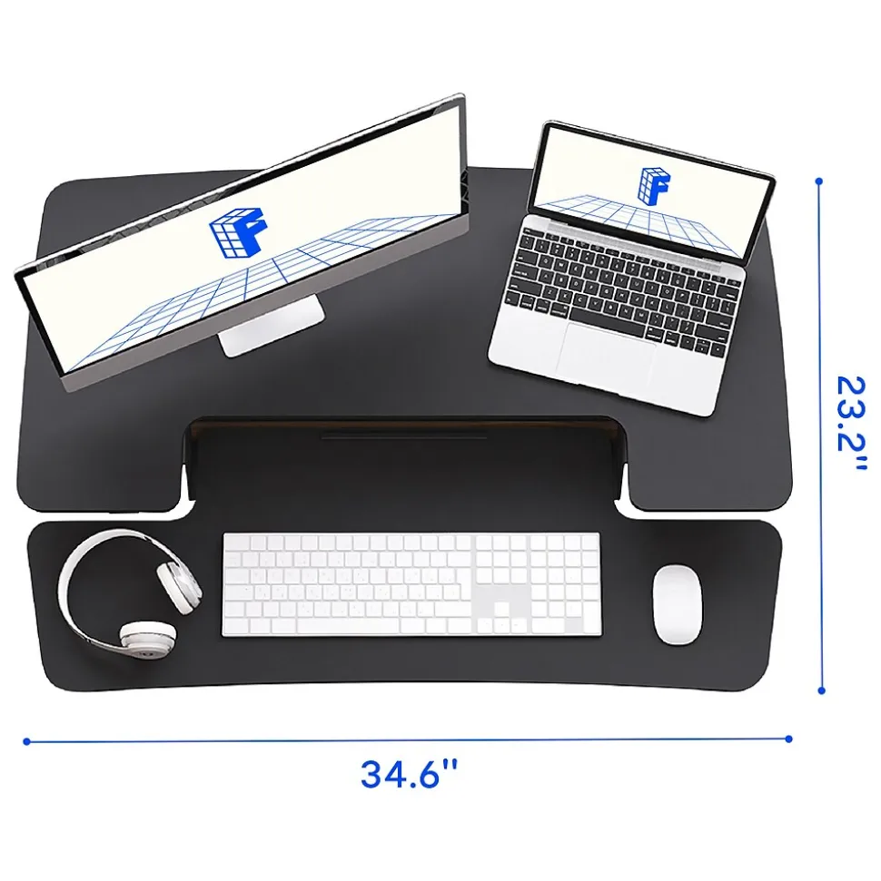 - Standing desk converter provides an easy way to transition between sitting and standing throughout the workday
