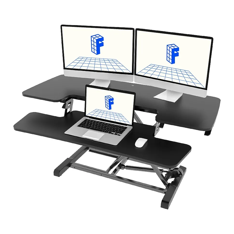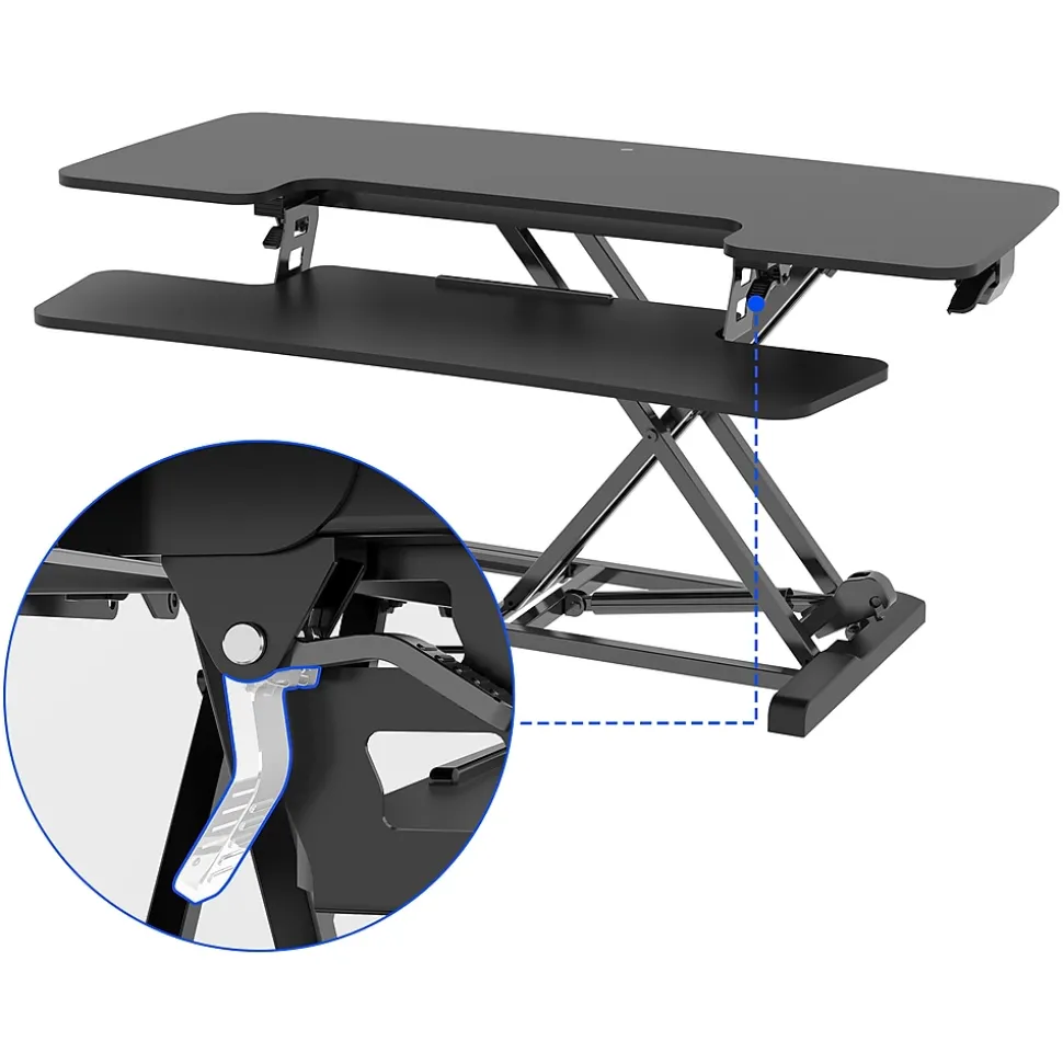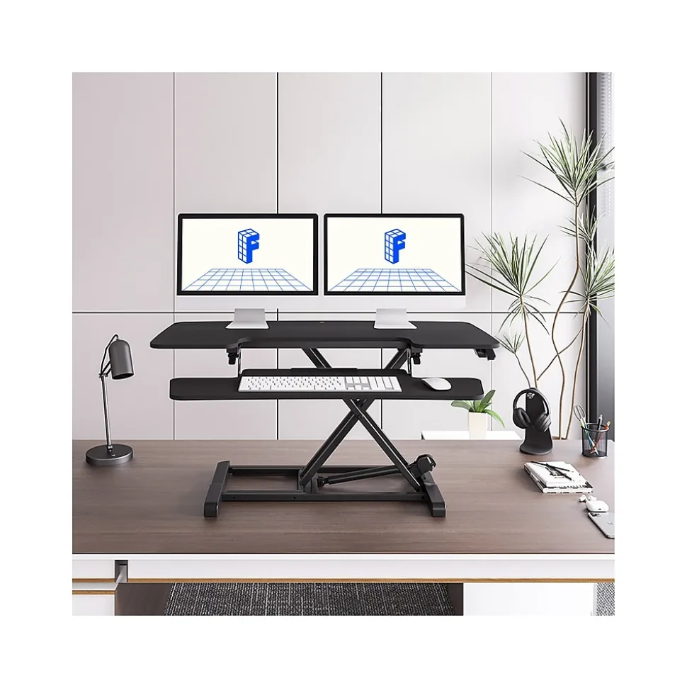 - Standing desk converter provides an easy way to transition between sitting and standing throughout the workday