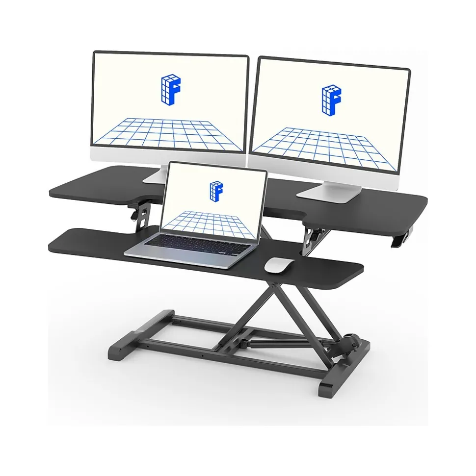 - Desk converter with adjustable height designed to give you the option to sit or stand in seconds