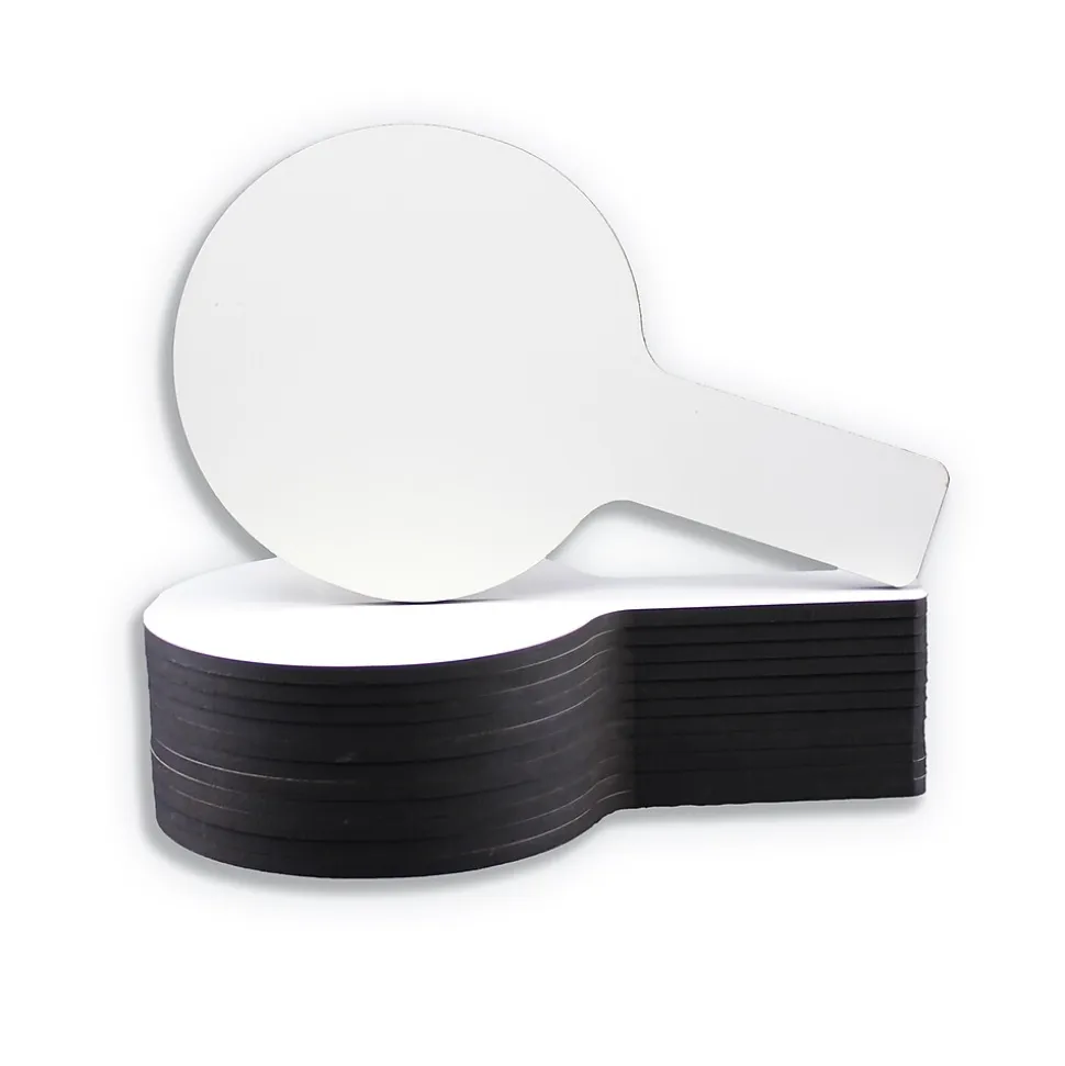 You can use the Flipside dry erase answer paddles to teach your students short sentences and new words. This mini dry erase paddle is white and highly functional. Children can have fun writing sentences and erasing them, while at the same time learn language and grammar. Available in a pack of 12, each dry erase answer paddle is 0.25 inches thick.