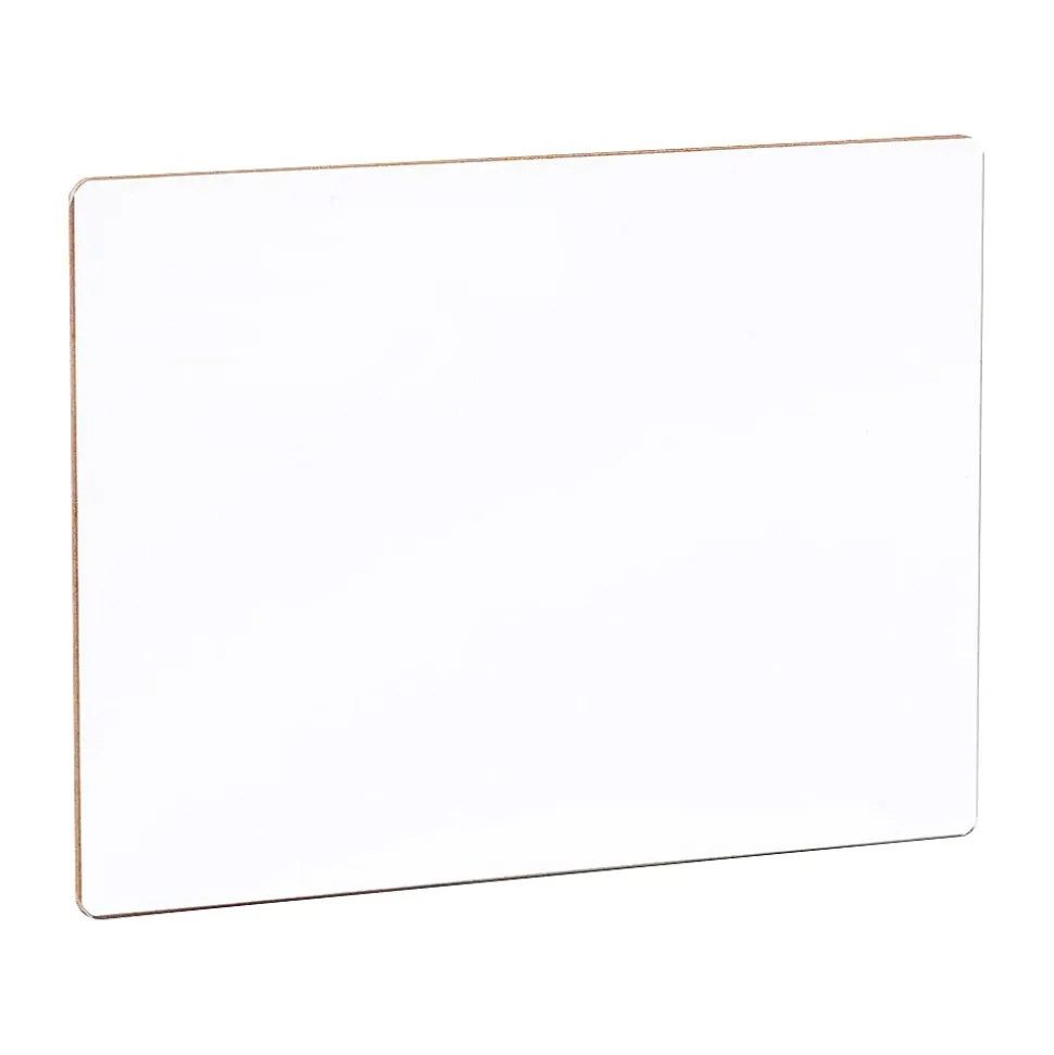 This Flipside economical, unframed lap board with a plain dry-erase surface is perfect for doodling, math or handwriting practice, and more. The bright white write-and-wipe surface is non-ghosting. The hardboard backing is warp- and chip-resistant. Nipped corners and smooth edges ensure comfort and safety.