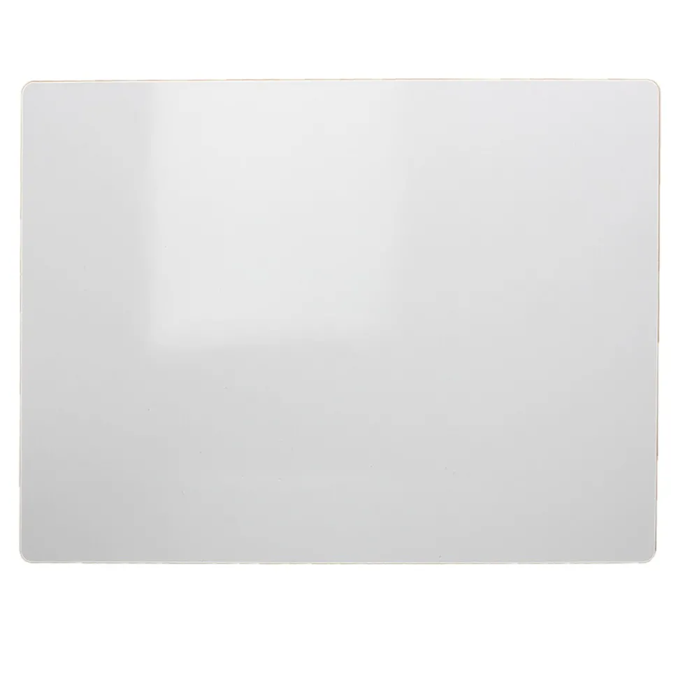 Economical, unframed mini board with a plain dry erase surface on one side is ideal for small reminders! Great for lockers or file cabinets with adhesive magnetic strips added (not included), or any time a bigger board is just too much. Quality write-and-wipe surface is non-ghosting. Hardboard backing is warp and chip resistant. Radius corners and smooth edges for comfort and safety.Measures 5″ x 7″ x 0.125″. Pack of 12 boards.