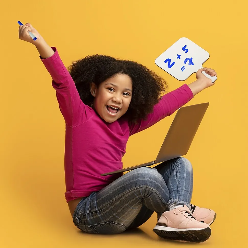 Quick and quiet whole class participation is made easy with the rectangular dry-erase answer paddle set. Rounded corners, an easy-grip handle, and smooth edges for safety and comfort. Great for review sessions, surveys, assessments, and more.