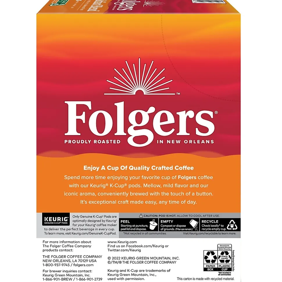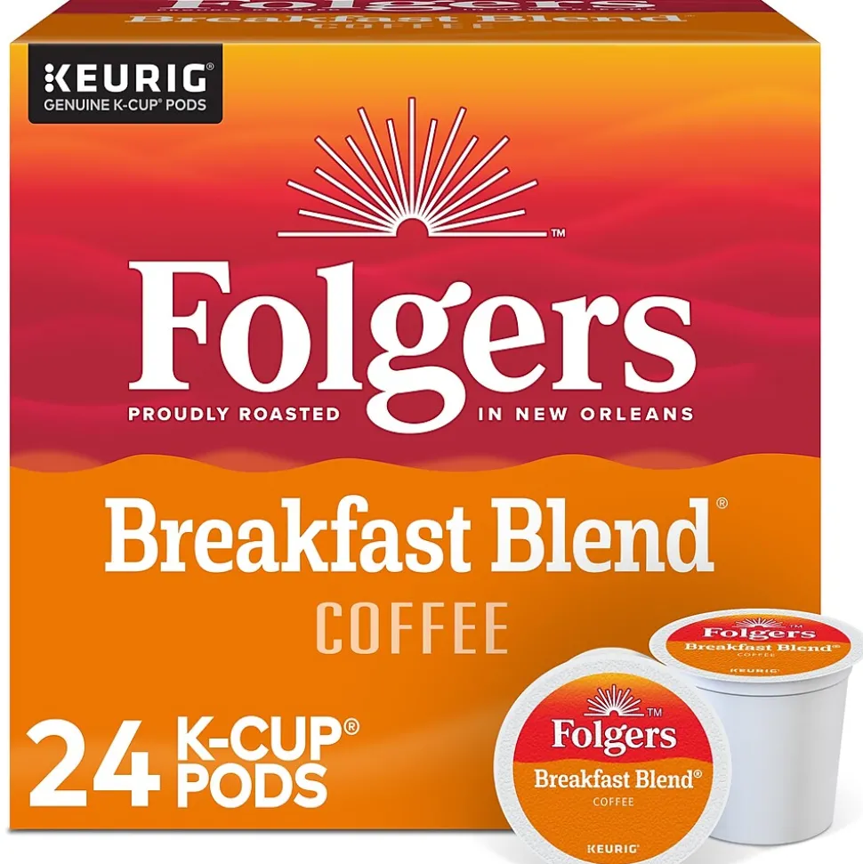 Folgers Breakfast Blend K-Cup coffee pods feature a light roast and mild taste for a clean, invigorating finish that lingers and with 24 pods in each pack, there’s plenty for everyone in the department.