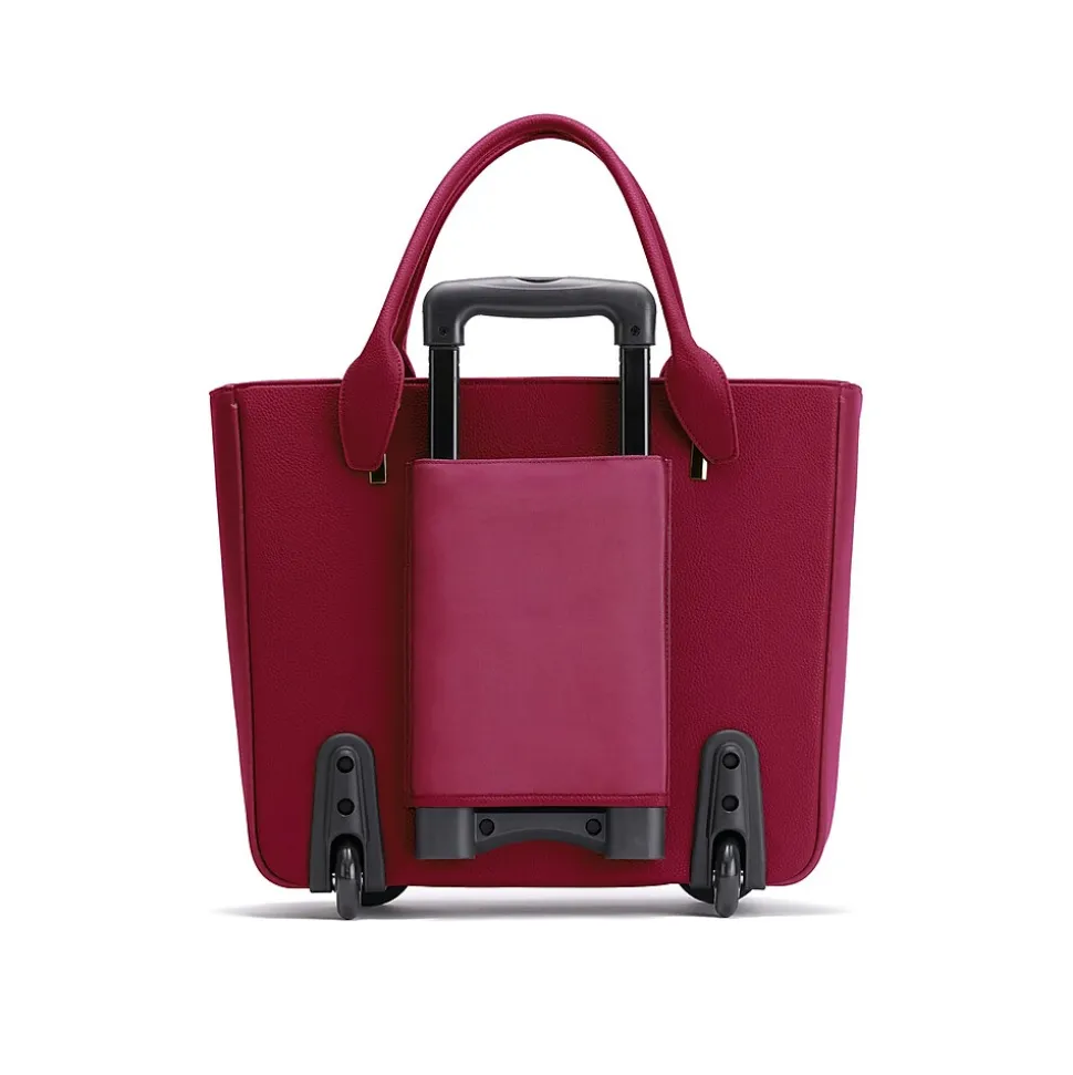 There’s no wonder why the Francine Collection Florence roller tote is in high demand. Francine Collection’s stylish and lightweight laptop roller tote wheels you through travel and work with fashionable ease. No matter your profession or destination, this burgundy laptop roller tote gives women the look of effortless, fashionable, and functional success, all with the traveling ease of wheels. Women want wheels. Francine Collection’s Florence laptop roller tote is your answer.