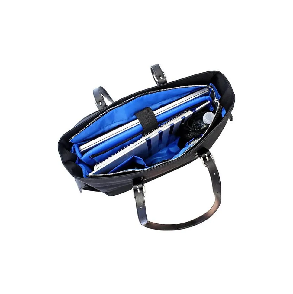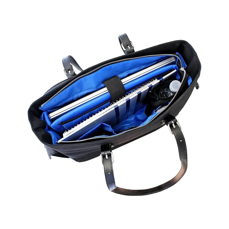 The Francine WIB Slim Liberator black carrying case is a functional, zippered notebook tote that is suitable for the woman. It has micro-fiber/faux leather trim exterior with nylon interior for added durability. This lightweight, washable carrying case features padded laptop compartment, zipper closure and padded handle. It supports device with screen size up to 14.1″. It offers ample storage space for your professional and personal needs.