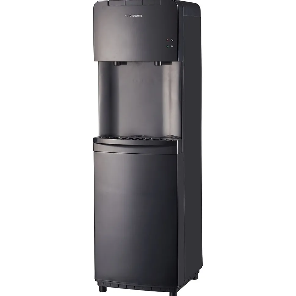Make sure you drink enough water! This Black Frigidaire water cooler dispenses both cold and hot water and can hold the contents of 3 or 5 gallon bottles. With 100 watts of cooling power and 420 watts of heating power, your water will always be at just the right temperature. Don’t rely on a thermo-electric cooled unit—this water cooler is powered by a robust compressor cooler, making sure your water is always nice and cold. There is also an indicator displaying, cooling, heating and power activity. With its clean look, this water cooler would fit in any kitchen, office, or dorm.